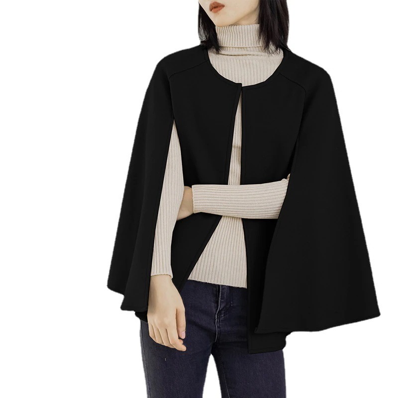 人気アウター 厚手 ラウンドネック 無地 ノースリーブ カーディガン ミディアム丈 ショール コート ツイード コート トレンチコート