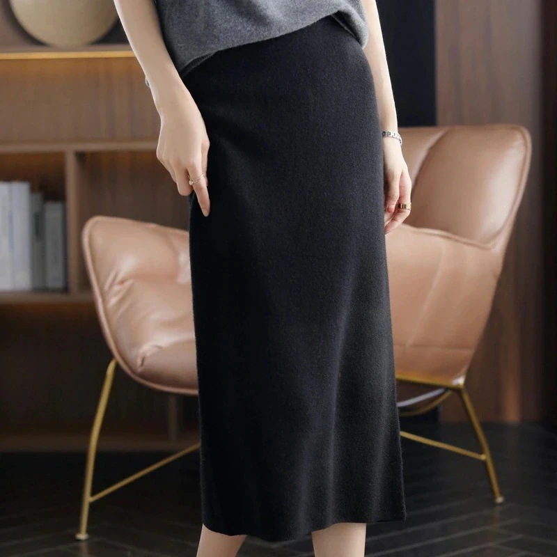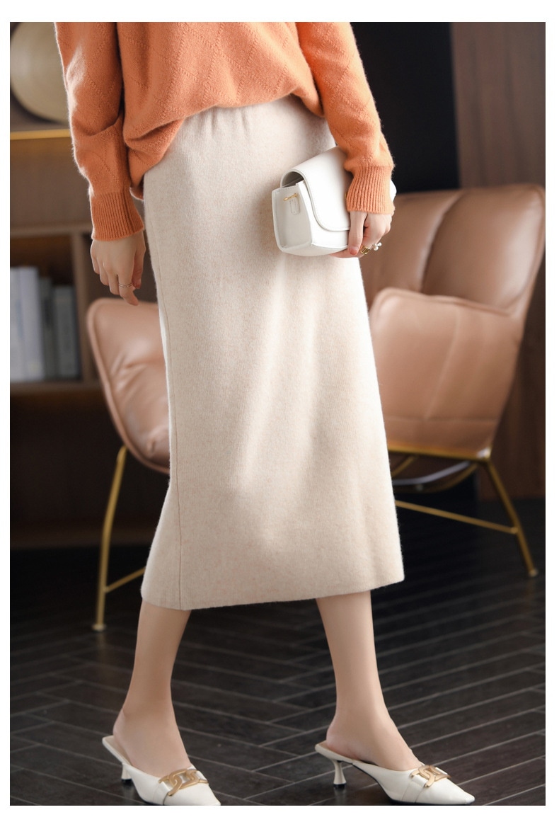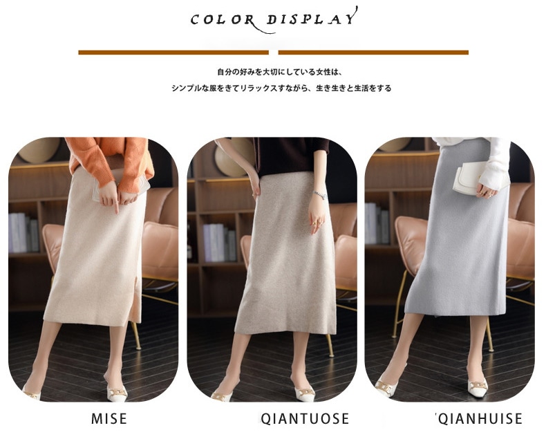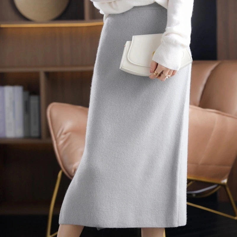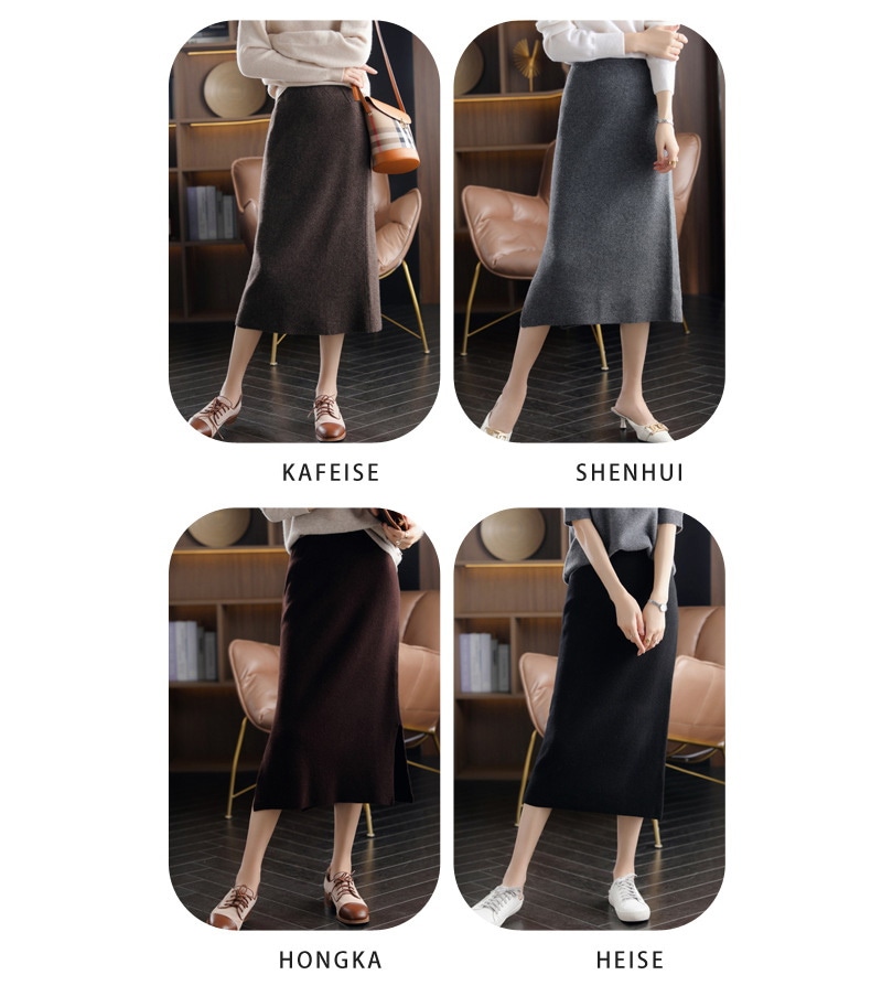 24H韓国ファッション の女性用ハイウエストウールスカートのスリットミドル丈ニットスカートファッショナブルで多用途 着痩せ その他 スカート