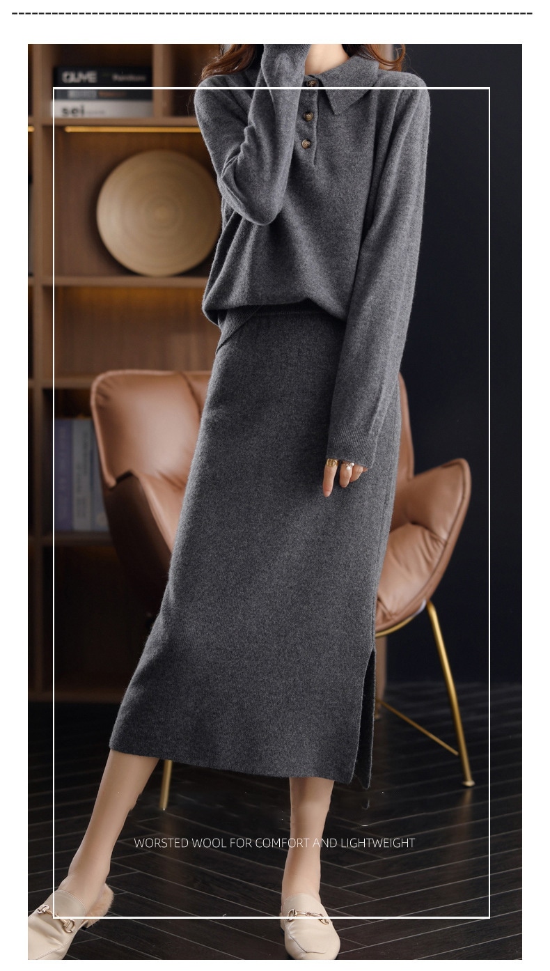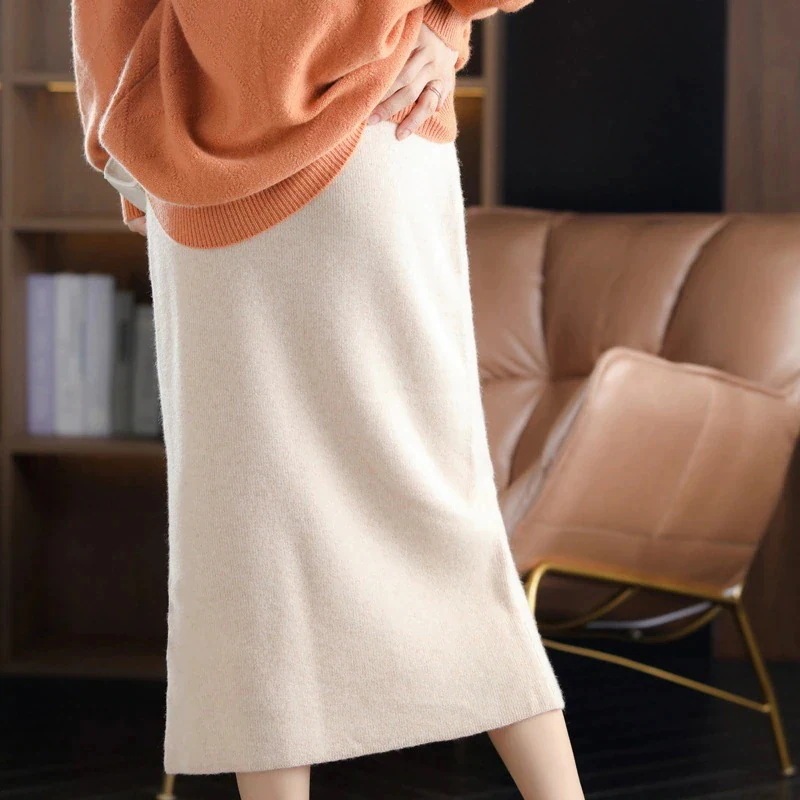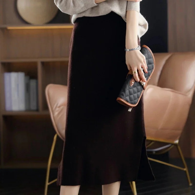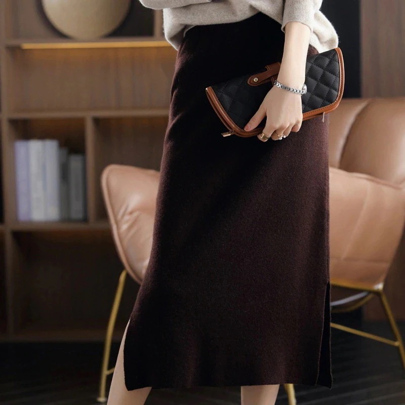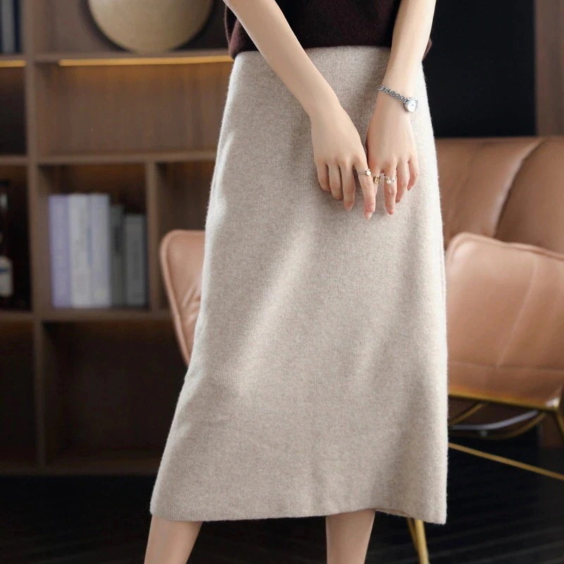 24H韓国ファッション の女性用ハイウエストウールスカートのスリットミドル丈ニットスカートファッショナブルで多用途 着痩せ その他 スカート