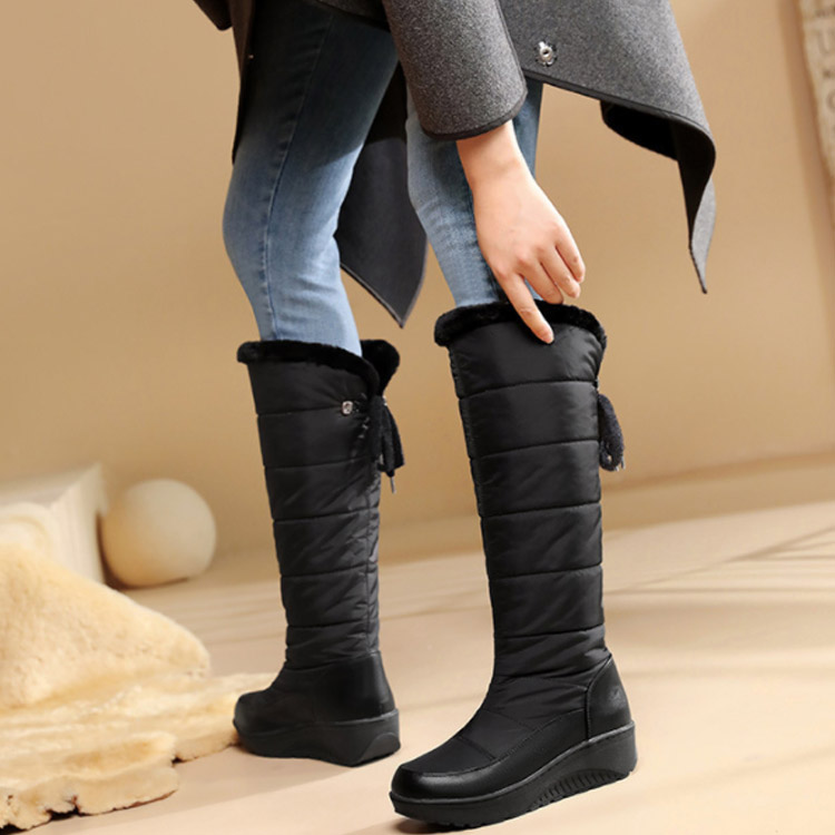 ロング スキーブーツ スノーブーツ ブラック 裏起毛 防滴防滑防寒雪靴 レディース ロングブーツ キルティング スノーデイ 防水 防滑 保温 カジュアル シューズ