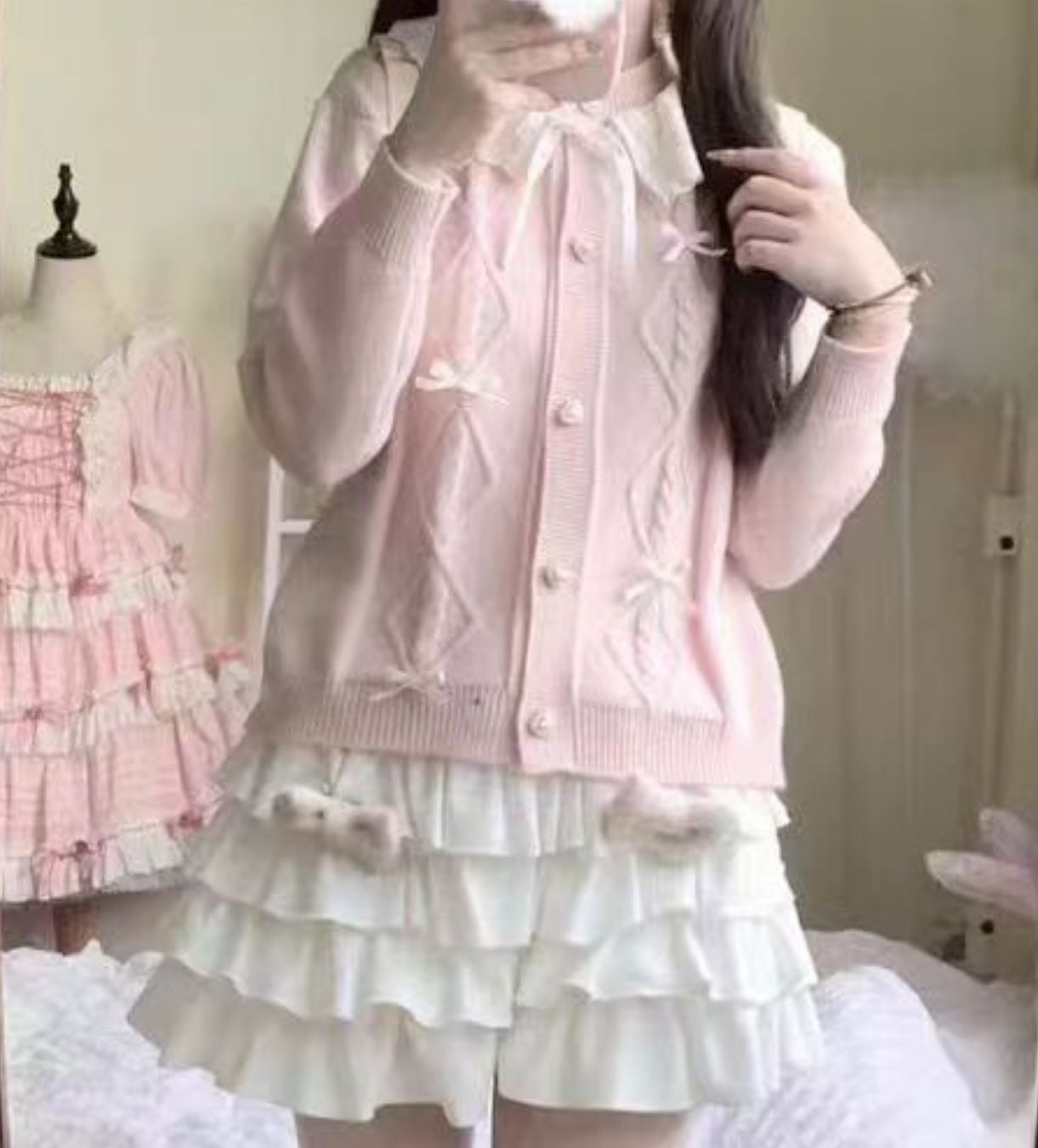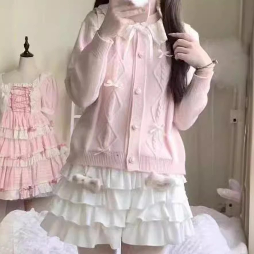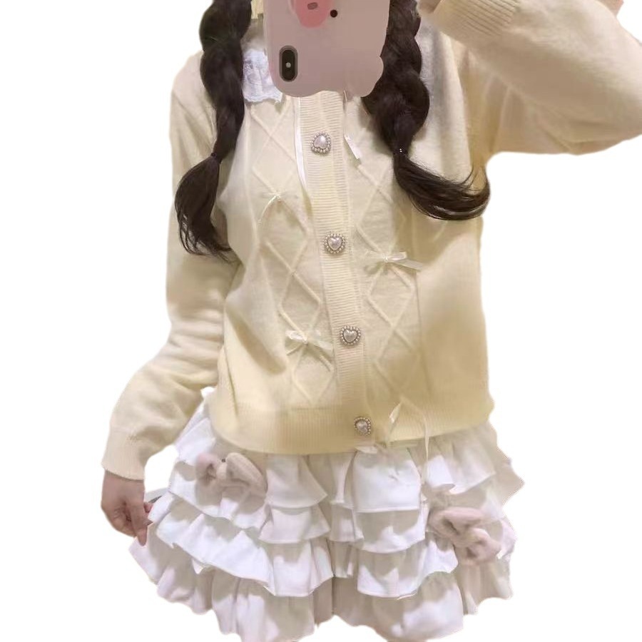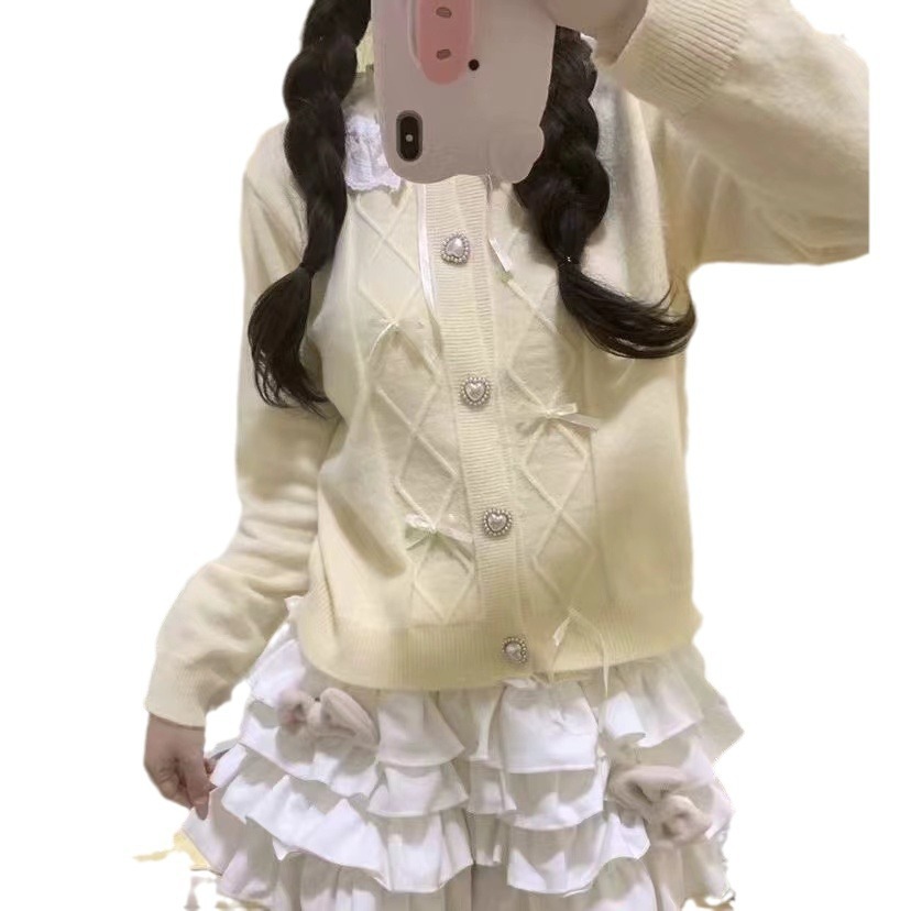 蝶ネクタイレースの縁にセーターをつなぎ合わせた女性コート秋冬の新型菱形デザイン感ニットカーディガン カーディガン
