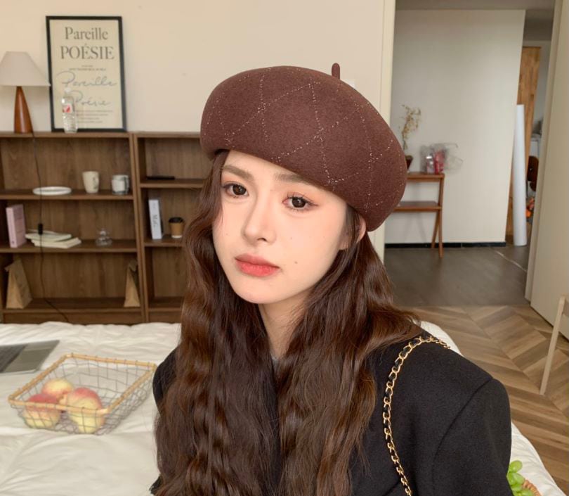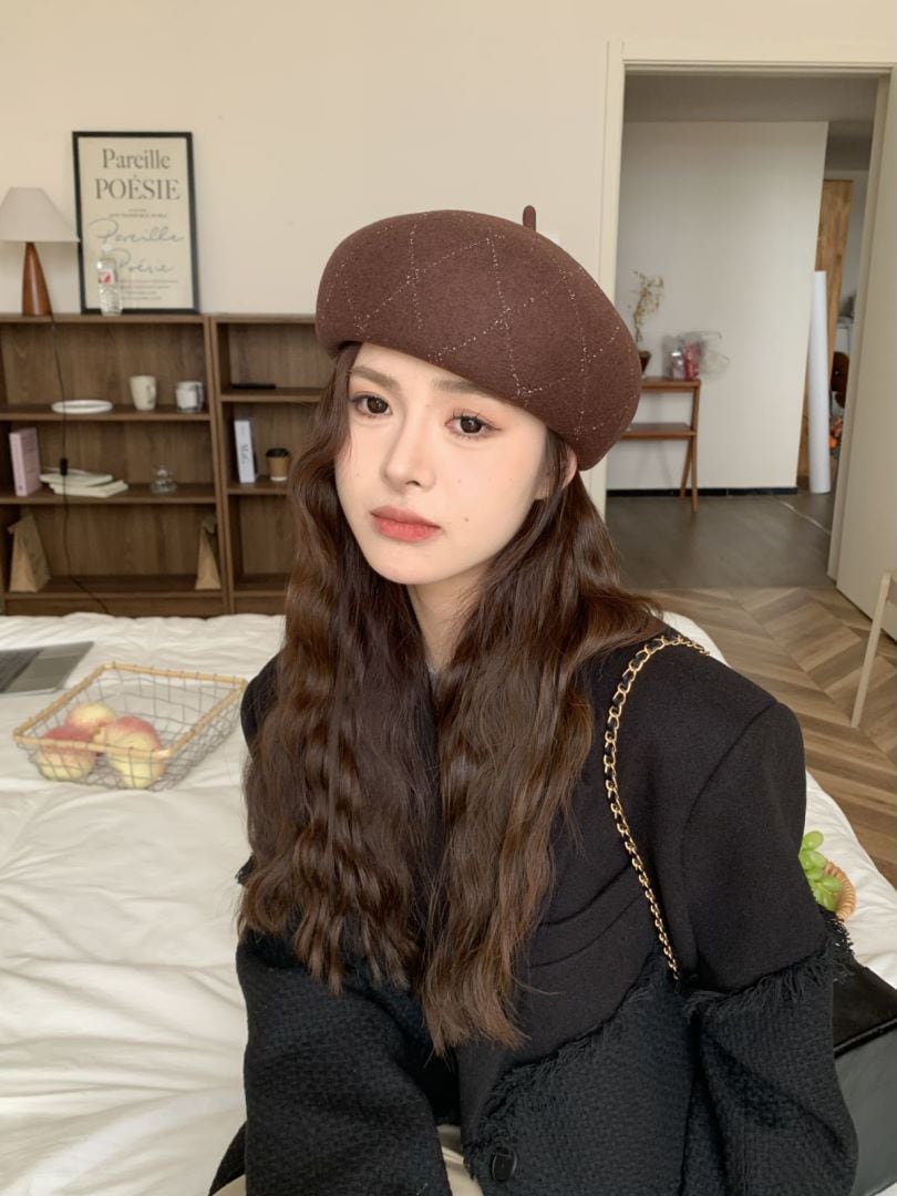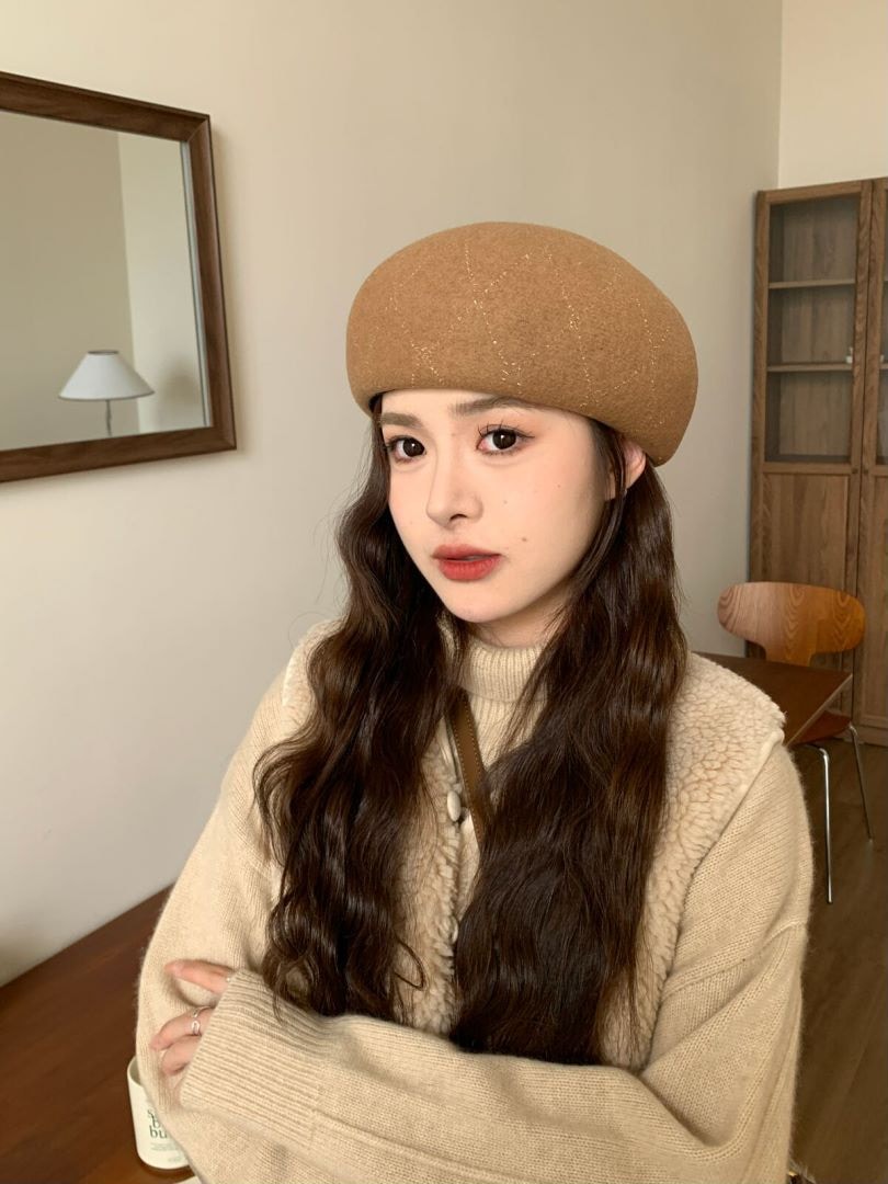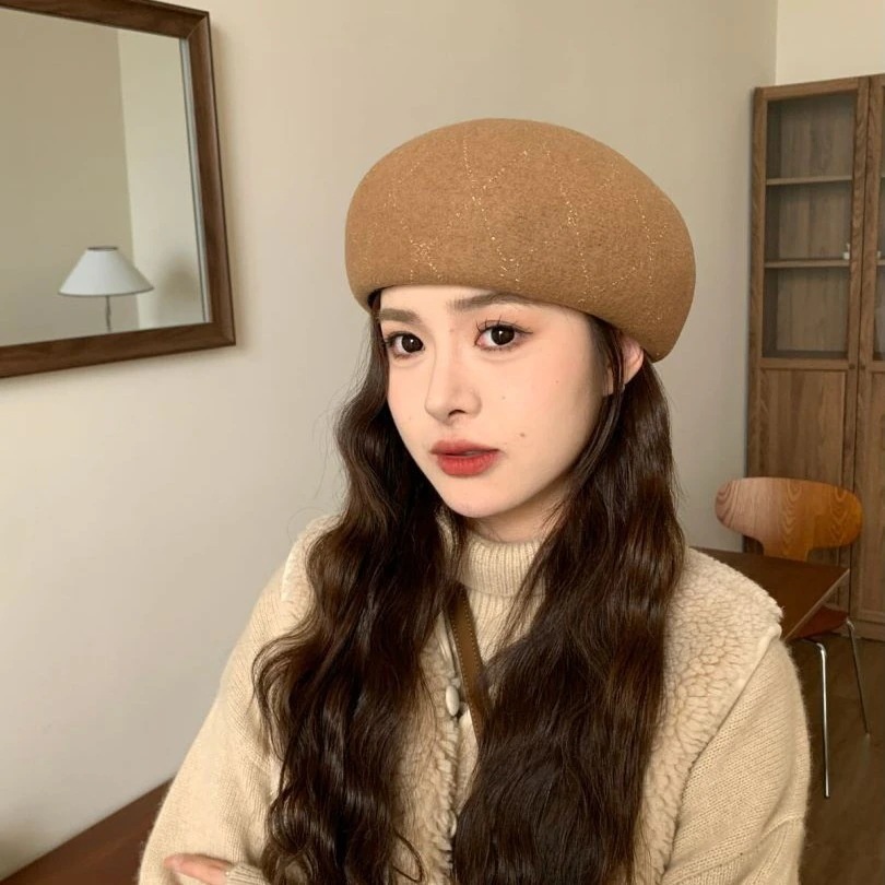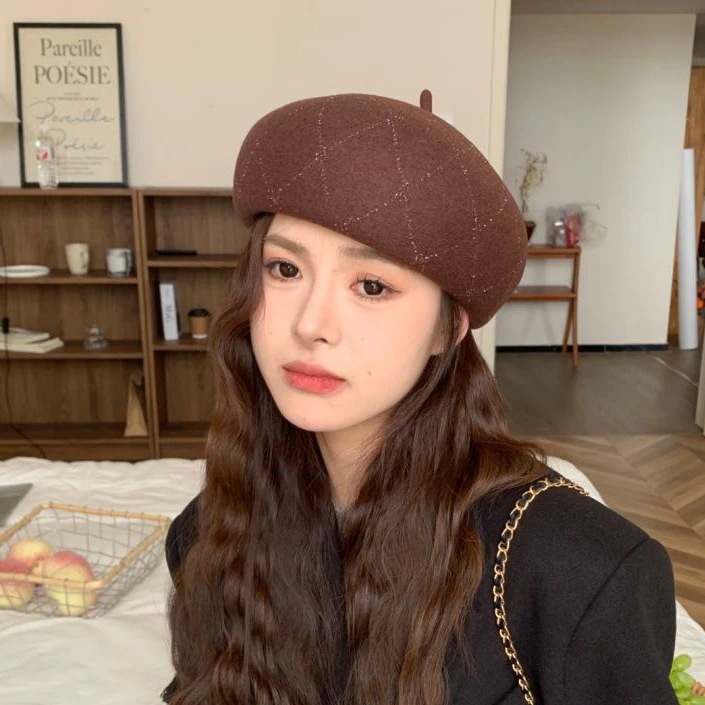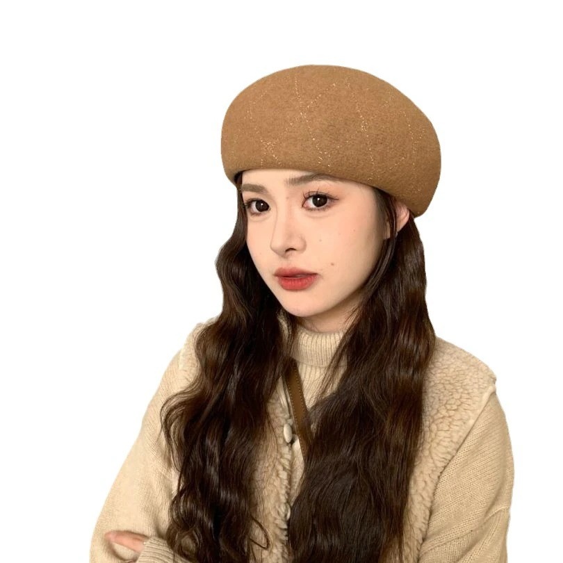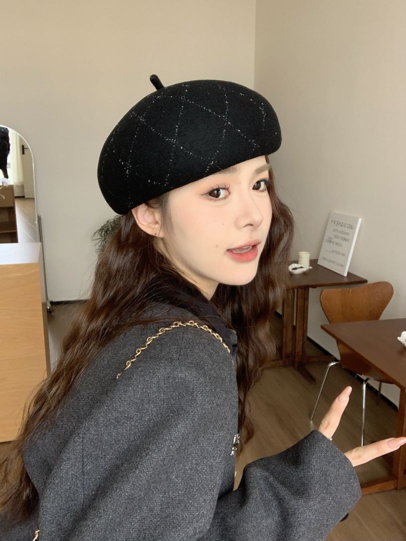 羊毛格子縞のラインストーンのベレー帽の女性の新しい秋と冬の暖かい画家の帽子の大きい頭囲のショー顔の小さい帽子 ベレー帽