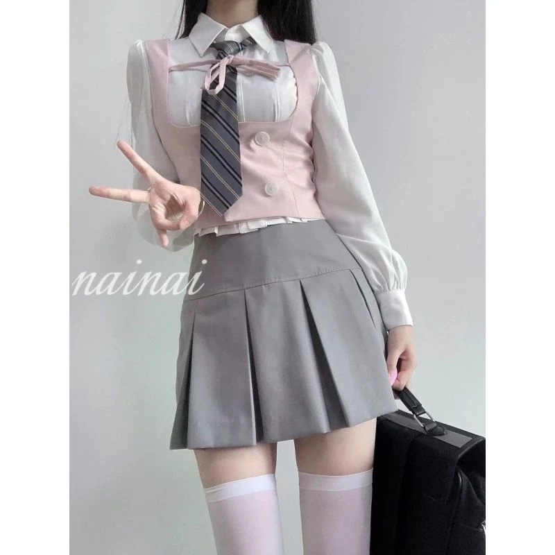 最旬トレンド 最时令流行趋势 JK制服セット レディース 秋 新作 スーツジャケット+シャツ+ベスト+スカート コスチューム
