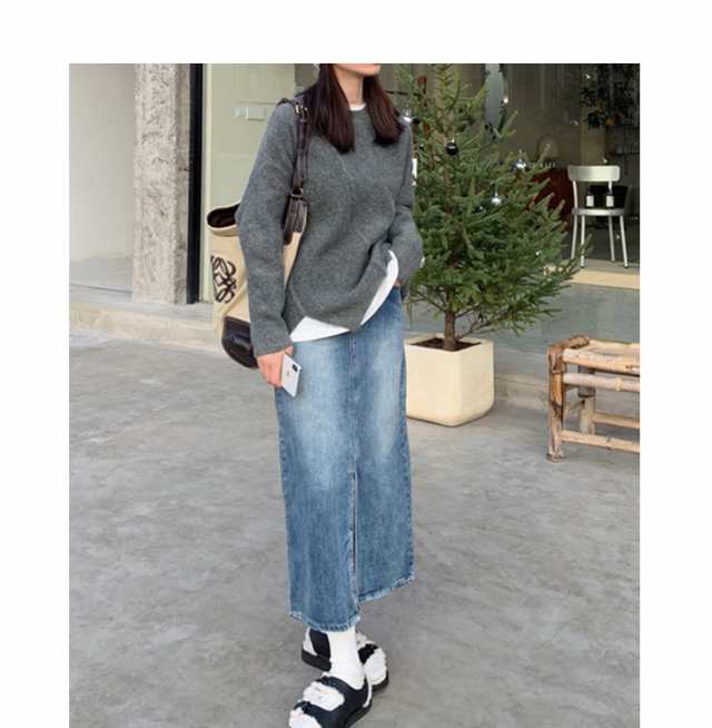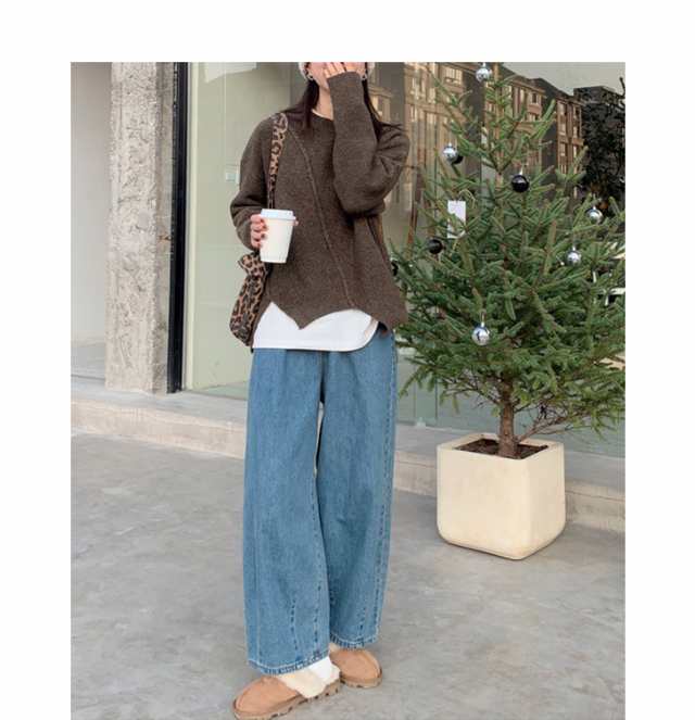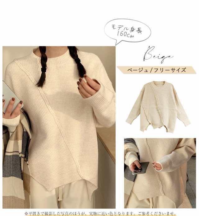 ニット セーター プルオーバー トップス レディース 長袖 秋冬 アシメトリー リブニット 丸首 販売終了 ニット