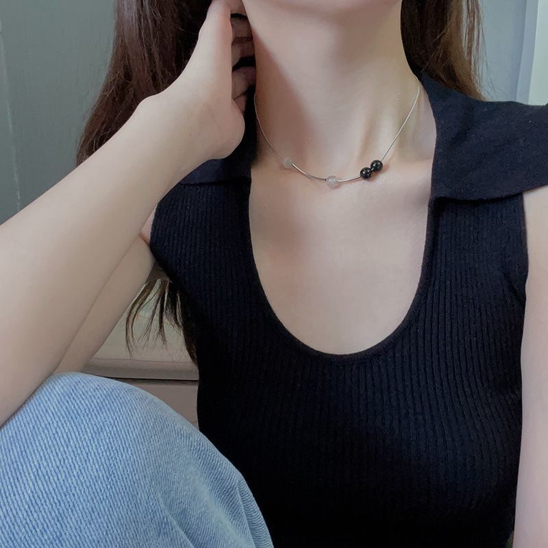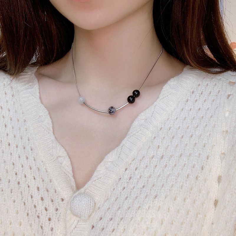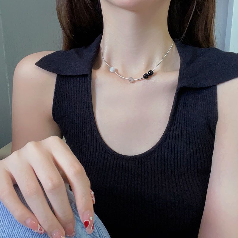 美しい首元ネックレス 気質ビーズネックレス女性非対称シンプルネックチェーンネックレス ネックレス