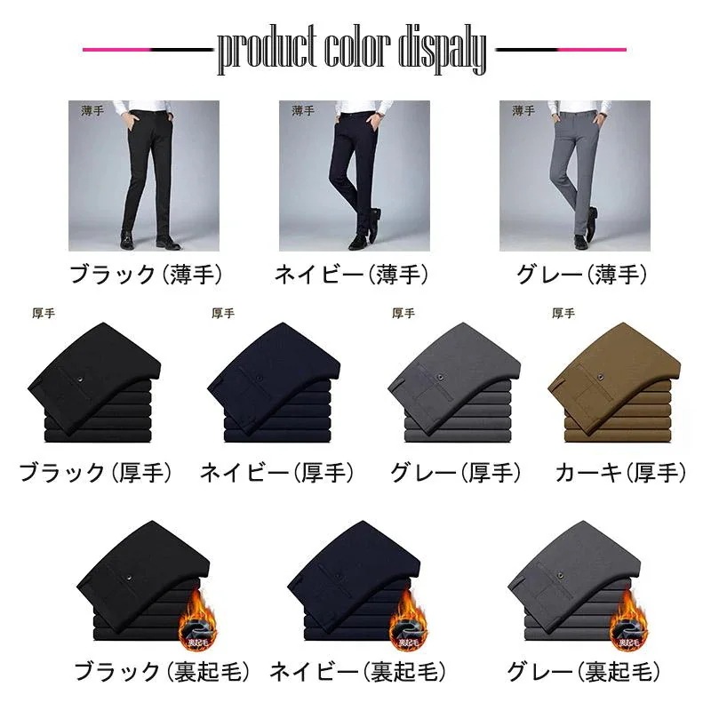 スラックス メンズ 紳士パンツ 厚手 裏起毛 ビジネススラックス スリムパンツ ストレートパンツ 通勤用 カジュアル オフィス 春秋 秋冬 ロングパンツ