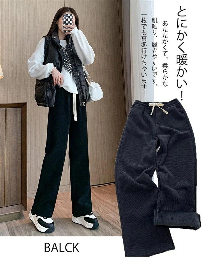 ワイドパンツ 秋冬 裏起毛 パンツ レディース ロングパンツ 微起毛 ガウチョパンツ 体型カバー パンツ ストレートパンツ ロング コーデュロイ 秋物 裏起毛 ウェストゴム ポケット付き 短め丈 普通