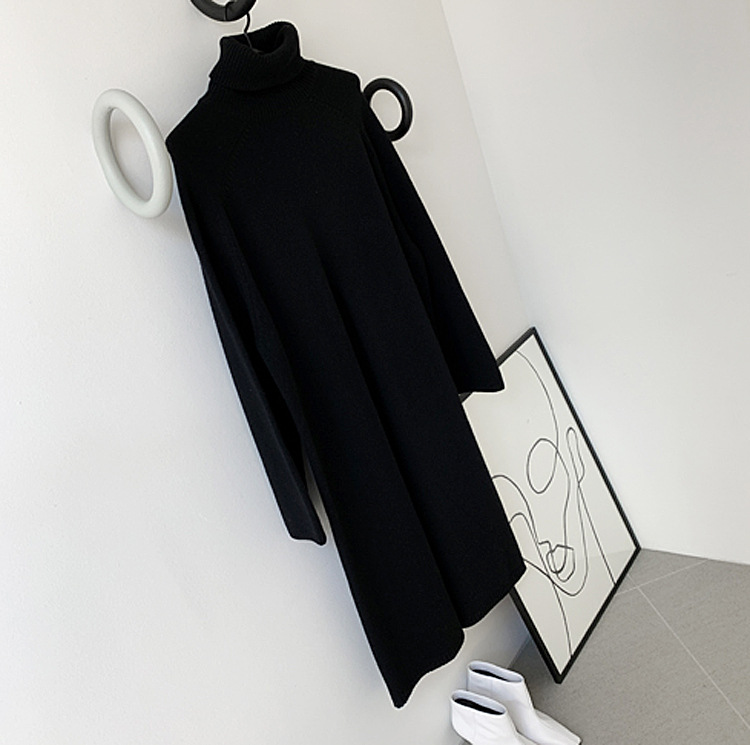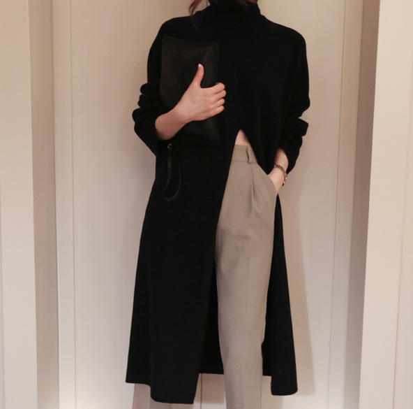 タートルネック 春 ニューデザイン ハイウエスト スリット おしゃれ タートルネック ロング丈 ワンピース セーターラウンドネックニットベーシックニット