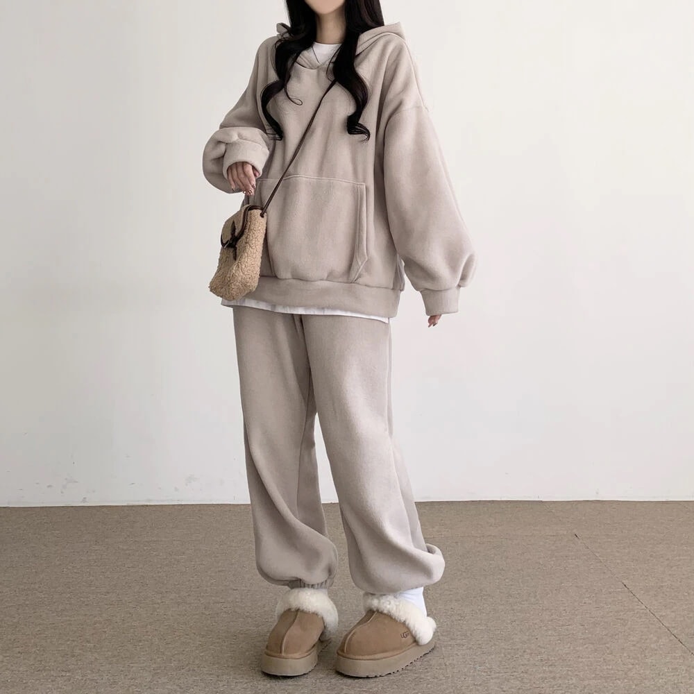 新作 シンプル スウエット 裏起毛 厚手 セットアップ レディース レディースファッション パーカー トップス ワイドパンツ 二点セット 大きめサイズ