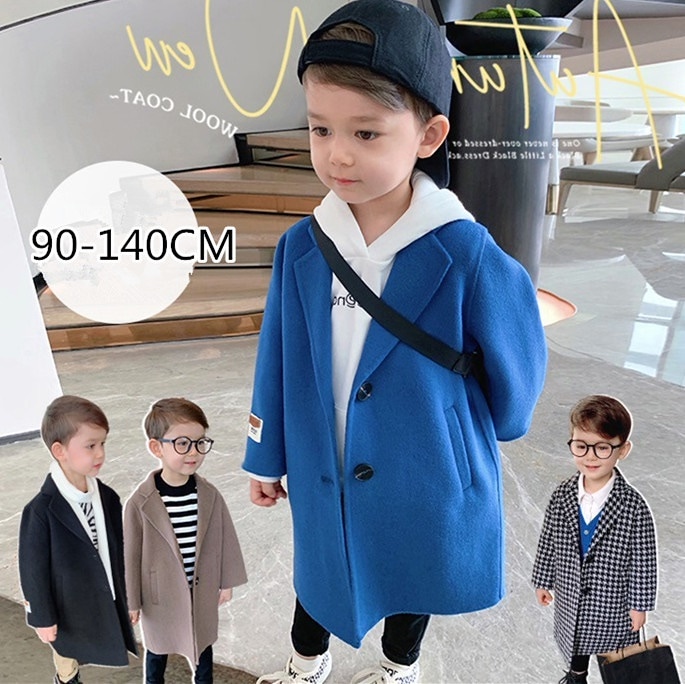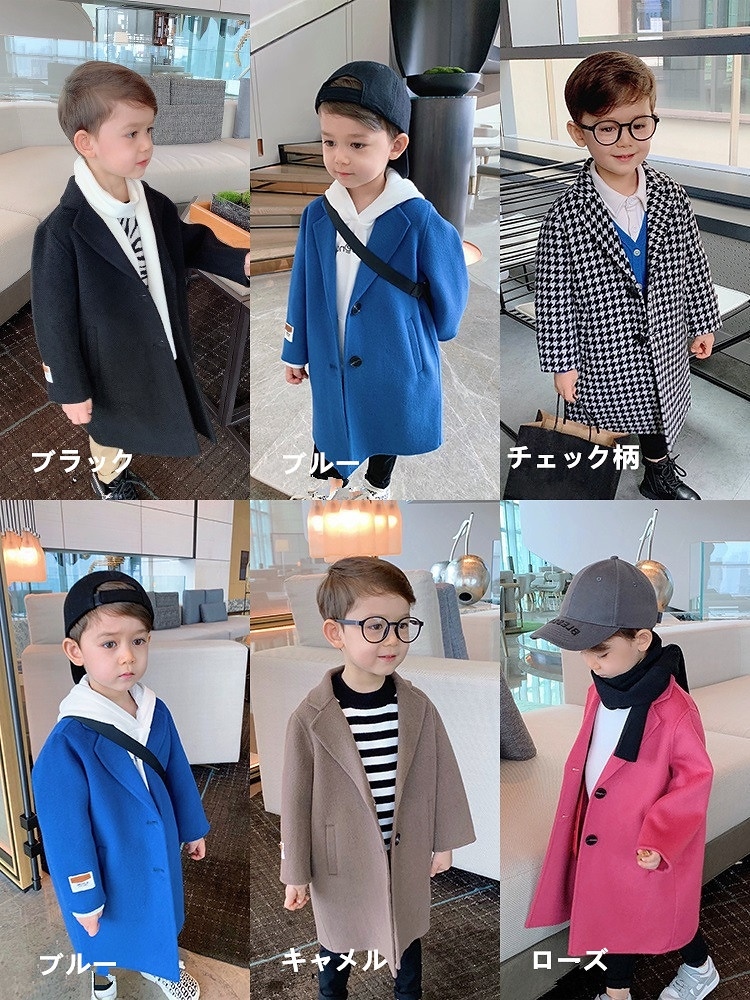 男の子女の子90-140cmメルトンコートントレンチコートロング丈キッズ子供チェック柄コートダウンアウタートレンチ韓国ァッショントレンチコートジャケットキッズウール