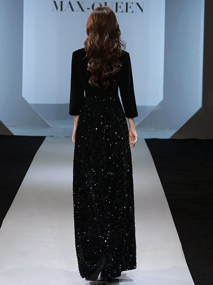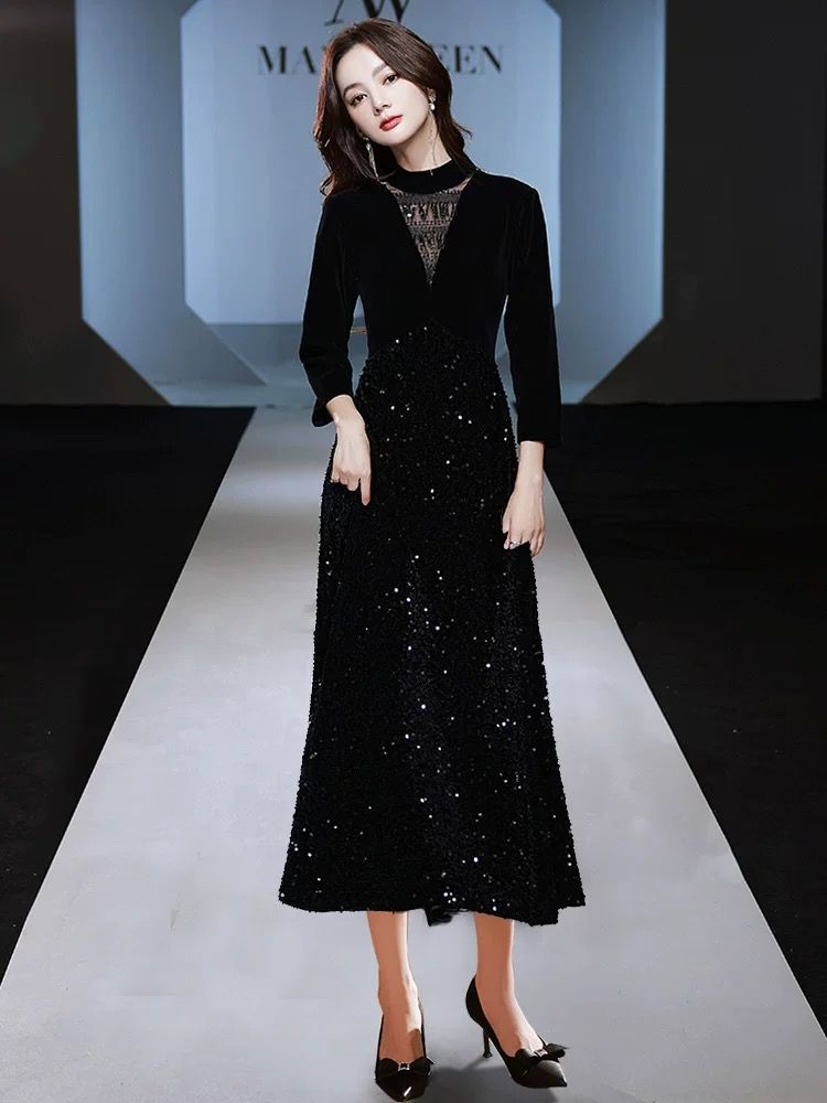 ベルベット ドレス 小柄 高級感 パーティードレス 黒 気質 イブニングドレス 演奏会 成人式 同窓会 発表会 フォーマル キャバドレス ワンピース OL 正式 礼装 チャイナドレス