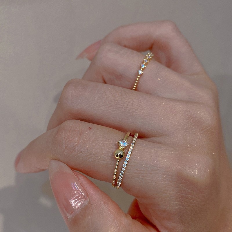 母の日韓国ファッション指輪リングレディースおしゃれギフトアクセサリー両層 韓国ファッション キラッとリング 指輪 指輪