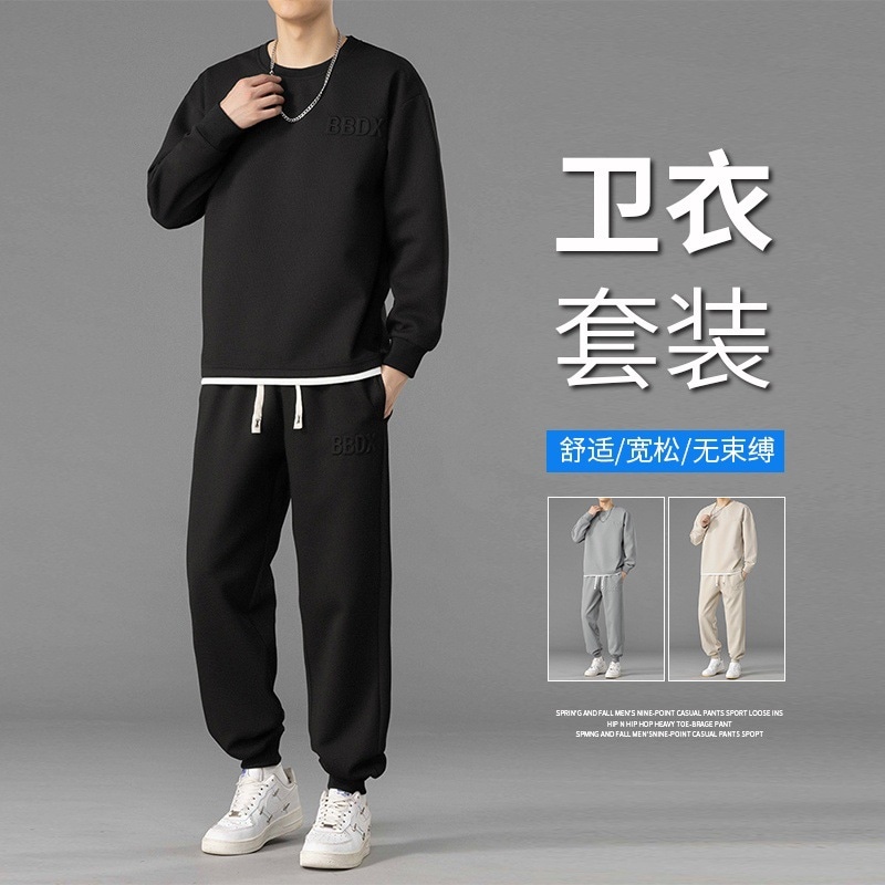 韓国ファッション メンズ セット 春秋 カジュアル 長袖 大きいサイズ スポーツ パンツ ワンセット セットアップ