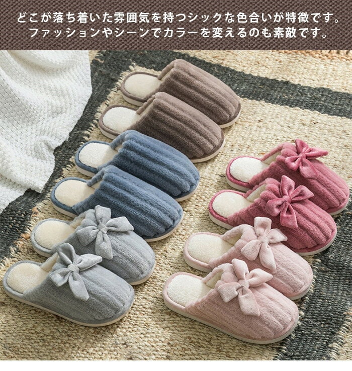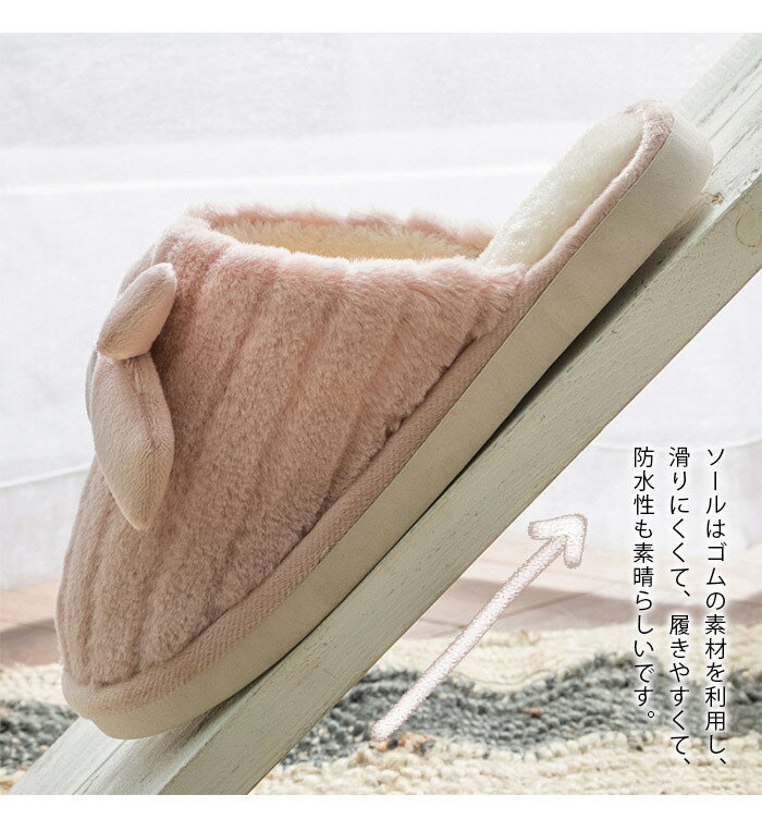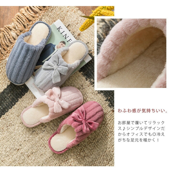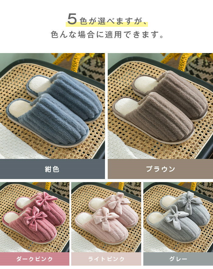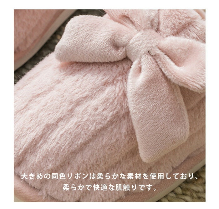 2点購入で600 OFF スリッパ あったか 冬用 ピンク もこもこ 秋冬柔らかいレディース メンズ フリース ルームシューズ リボン付き あったかフィットスリッパ 男 女 ふわふわ 室内履き 冷