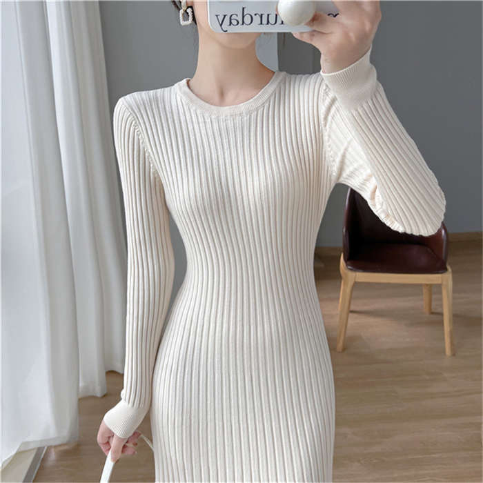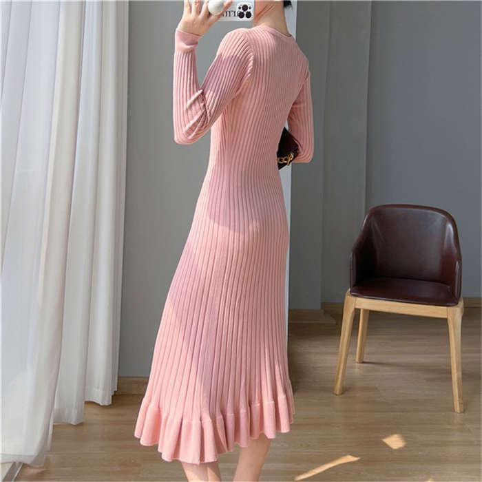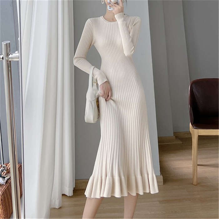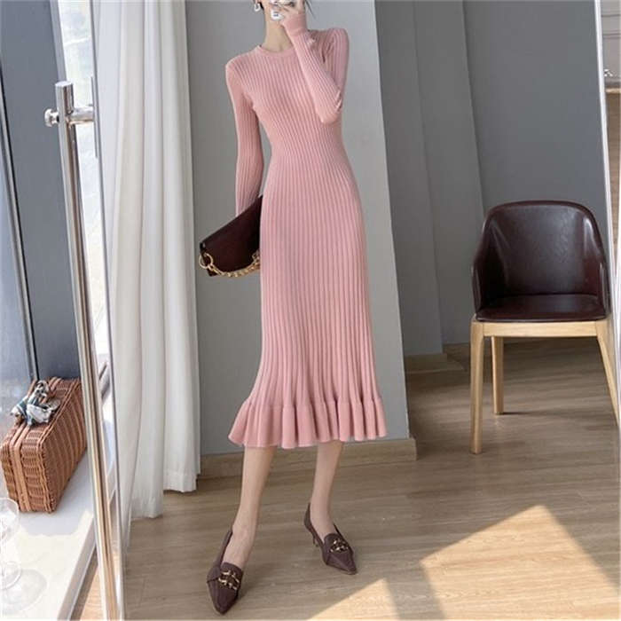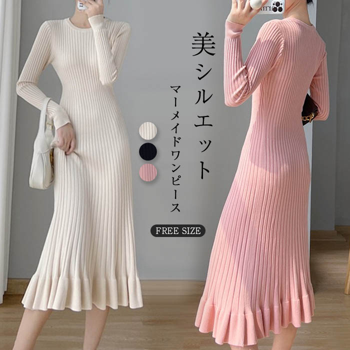 ニットワンピース レディース タイト ワンピース Aライン フレア裾 マーメイドシルエット ワンピース タイト タイトワンピ 長袖 無地 ニット 膝丈 通勤 オフィス 着瘦せ 秋 冬 タイトワンピース