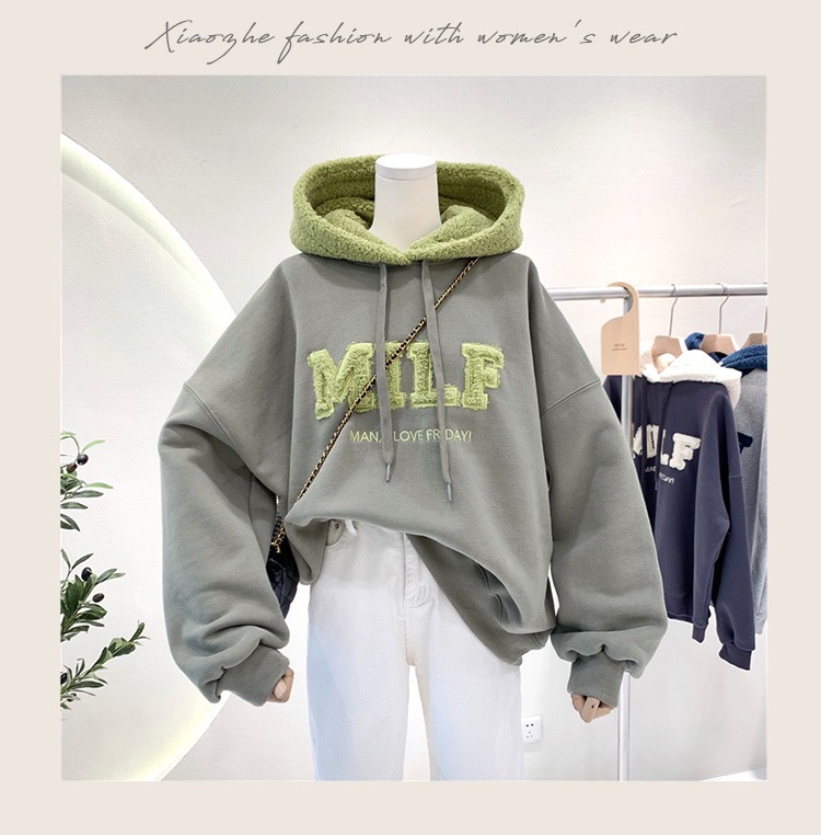 裹起毛 パ一力一トレンドはビッグロゴ 秋冬ラムズウール 切り替え パーカー レディース 大きいサイズゆったり怠惰な風 国ファッション長袖トップス 裏起毛ファッション