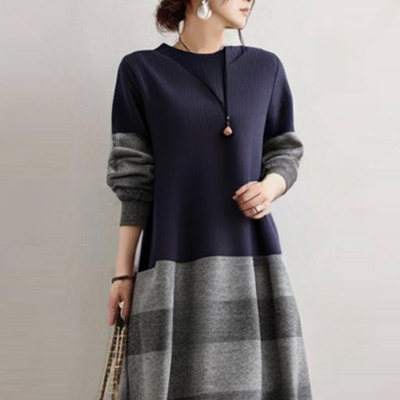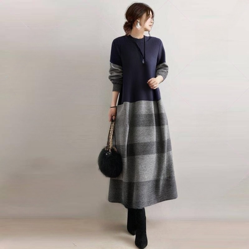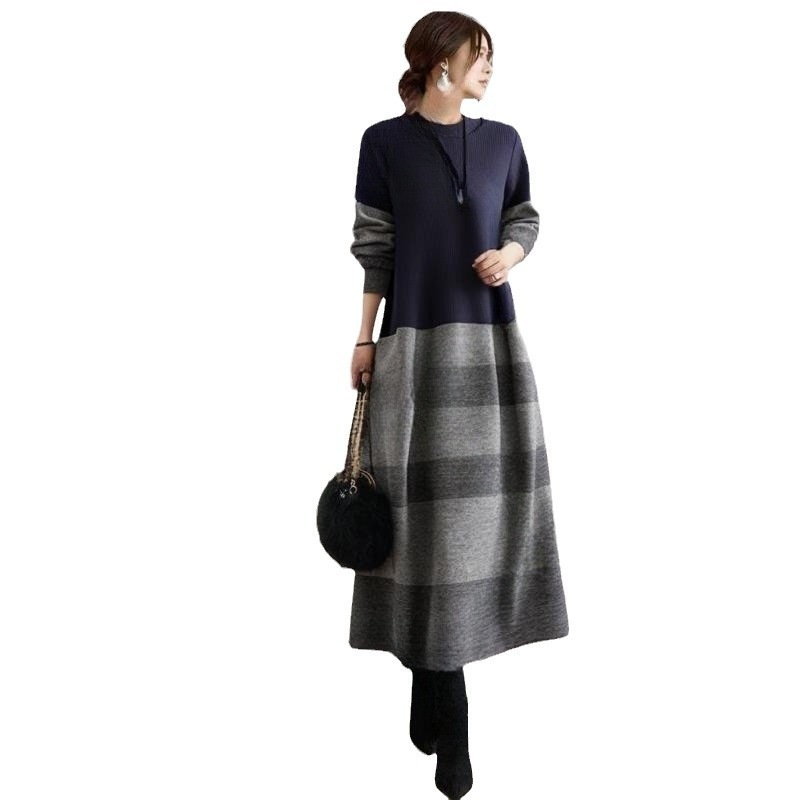 ワンピース レディース 秋冬 ロングワンピース 丸襟 長袖 きれいめ ワンピース ドッキングスカート 通勤 韓国 セクシー 新作 着痩せ 長袖ロング マキシ丈ワンピ