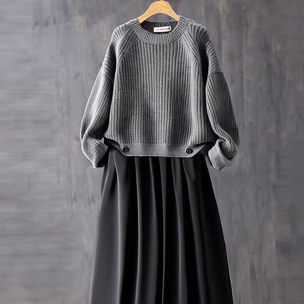 2点セット 新作 ゆったりグレーセーター パンツスーツ カジュアル レディース 上下セット 通勤 韓国風 オシャレ ゆったり 着痩せ セットアップ