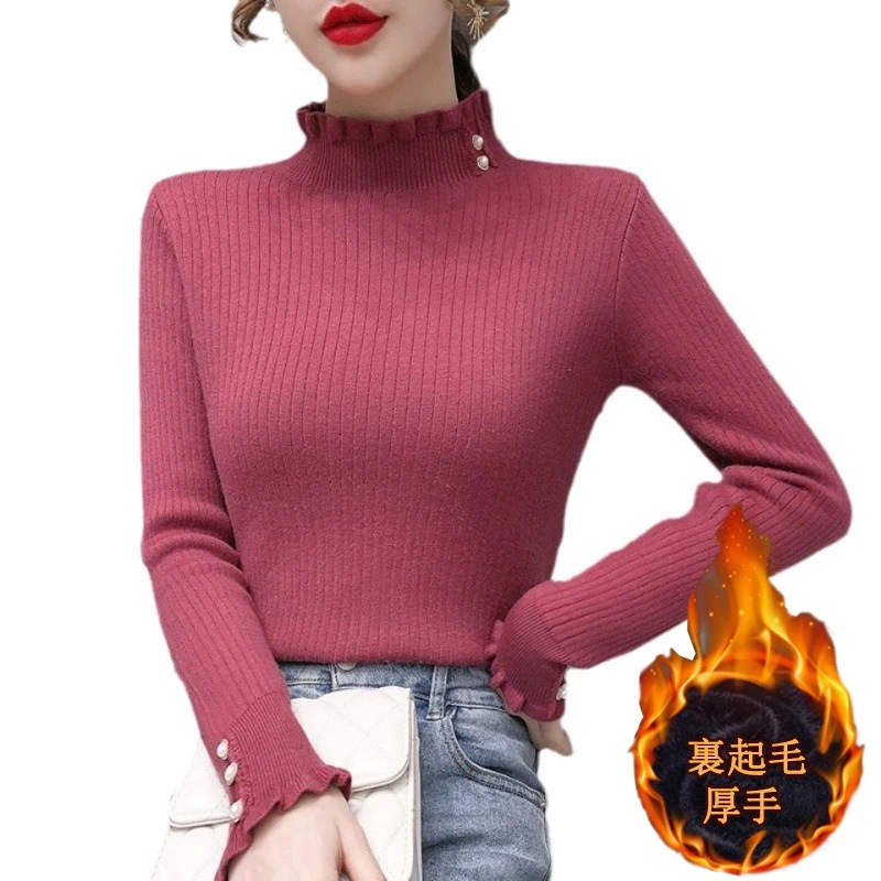 カシミヤタッチ一体型 秋冬 裏起毛季候 ウォーム ハイネックニットアンダーウェアベーシックニット 裏起毛フアッション 人気なリプニット ニット