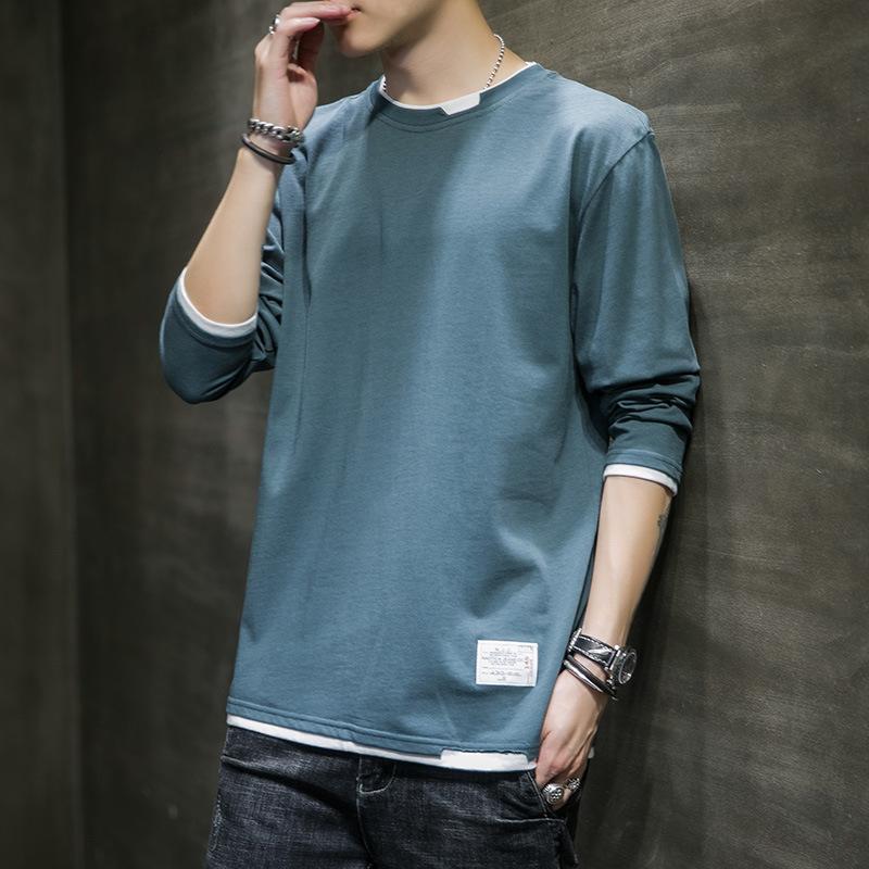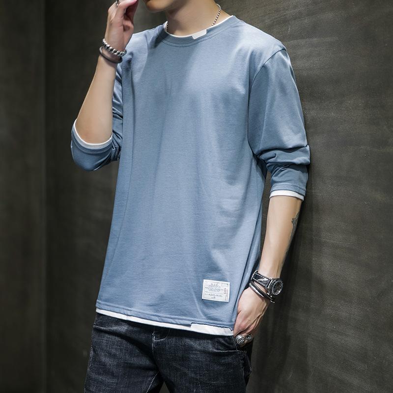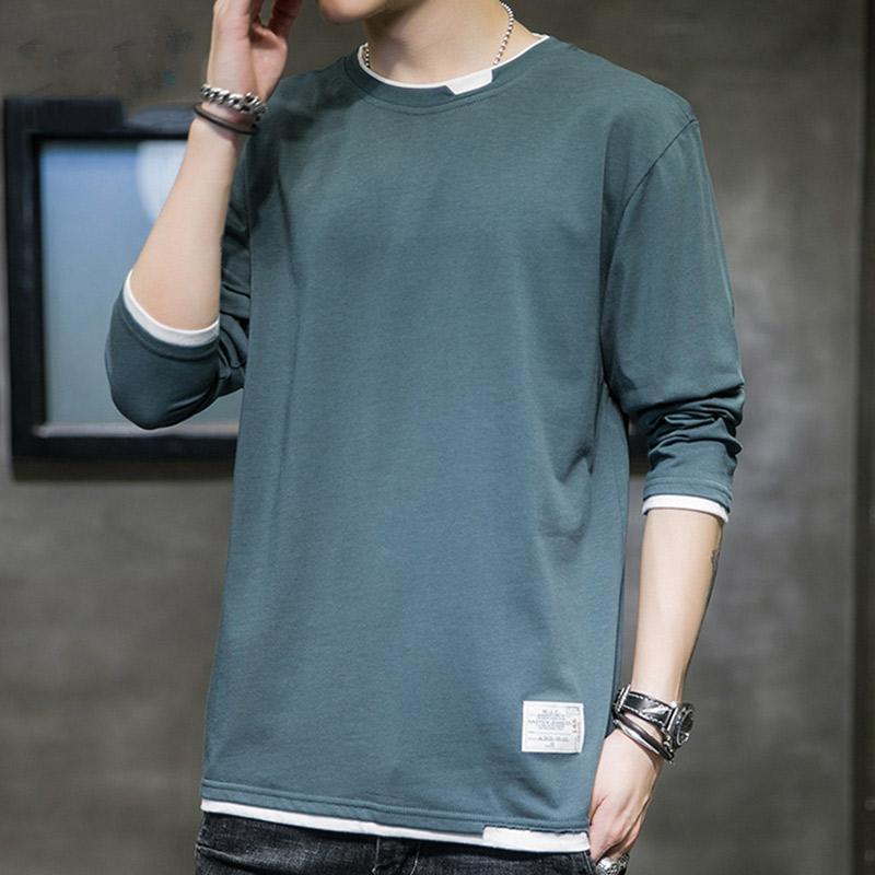 人気沸騰 新品 トレーナー メンズ トップス クルーネック 肌着 重ね着風 春秋 コトン 秋物 M-4XL スウェット カジュアル Tシャツ 切り替え 長袖 通勤