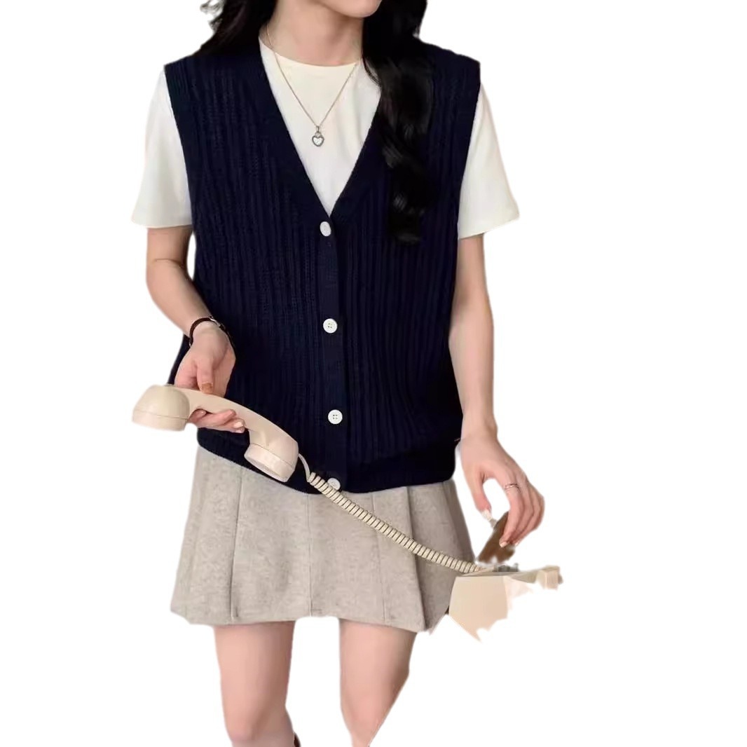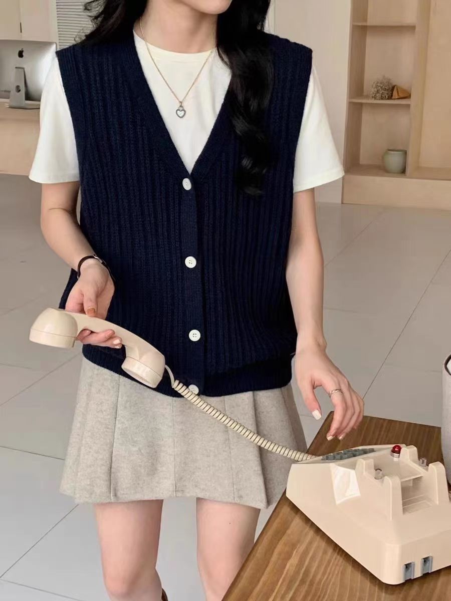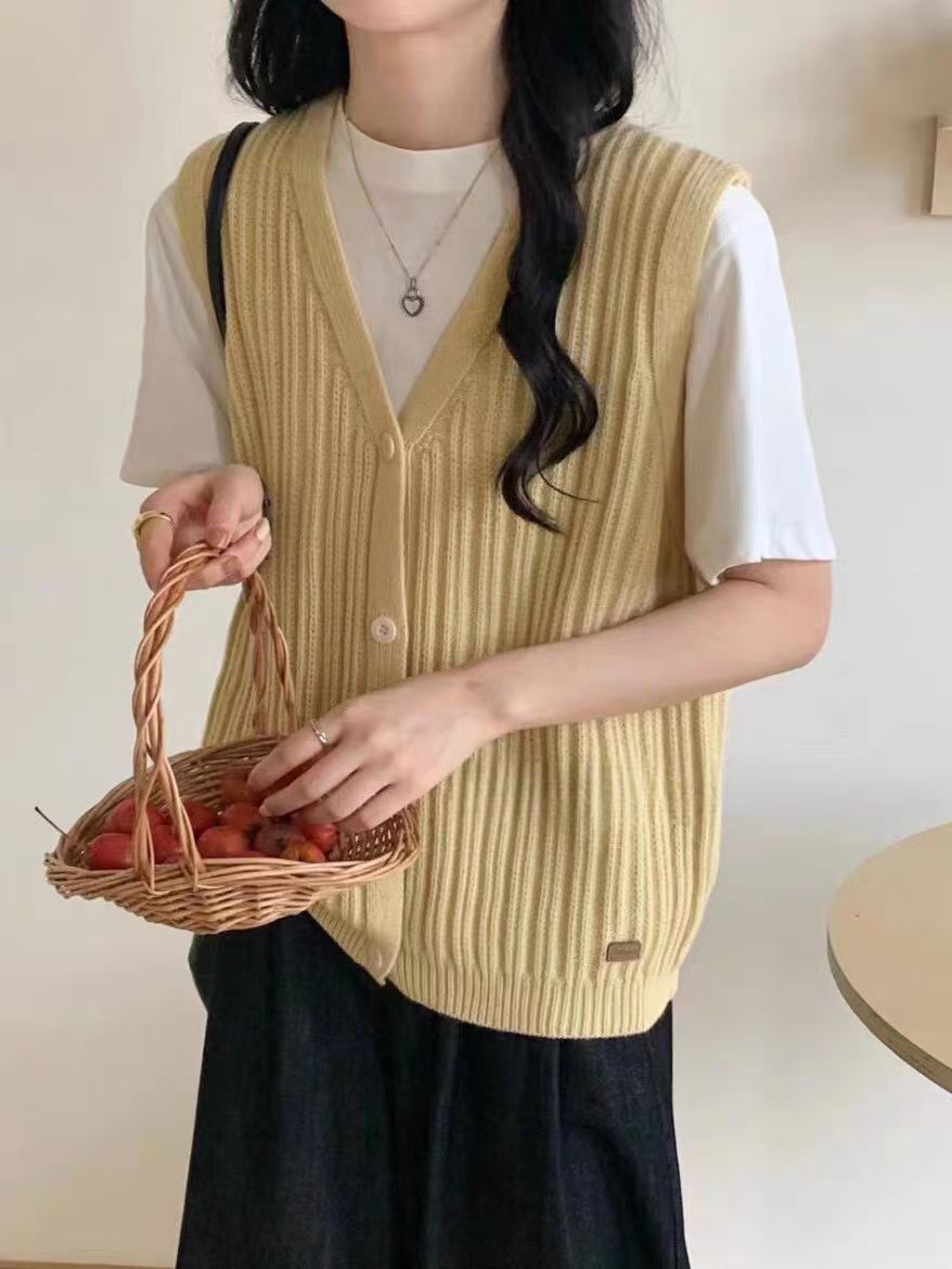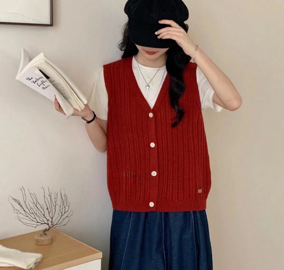 ニットベスト レディース Vネック 春 秋 前開き ベスト トップス カーディンガン ニット ノースリーブ セーター レイヤード 重ね着 ゆったり 大きいサイズ 体型カバー カジュアル