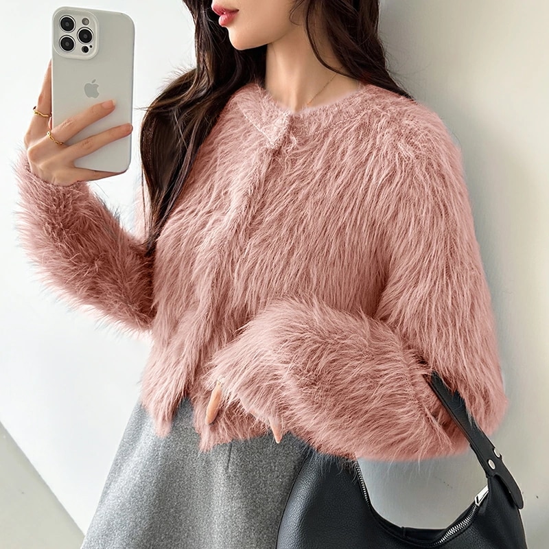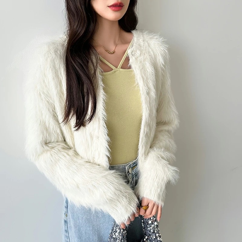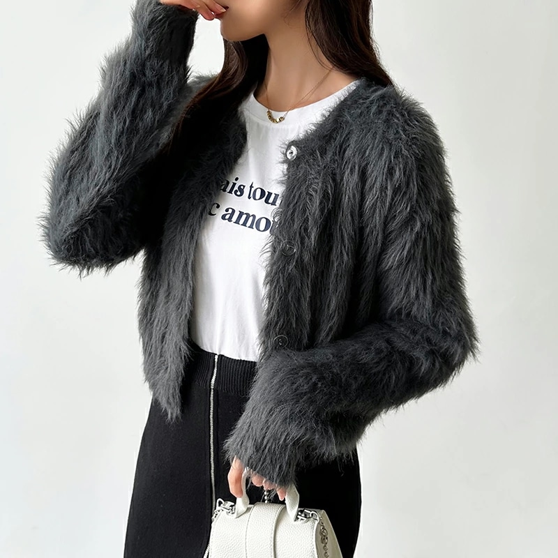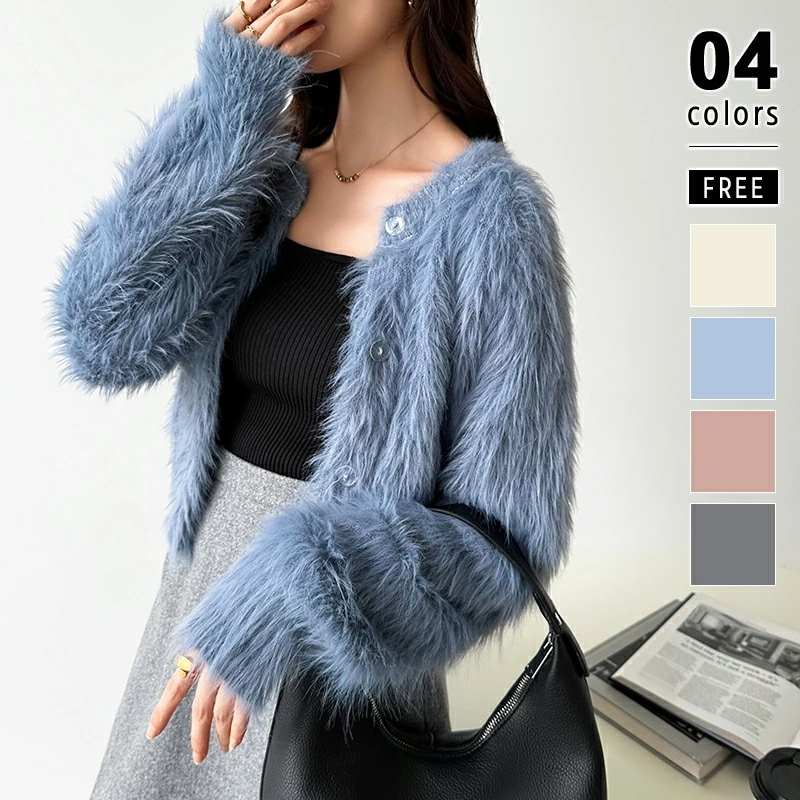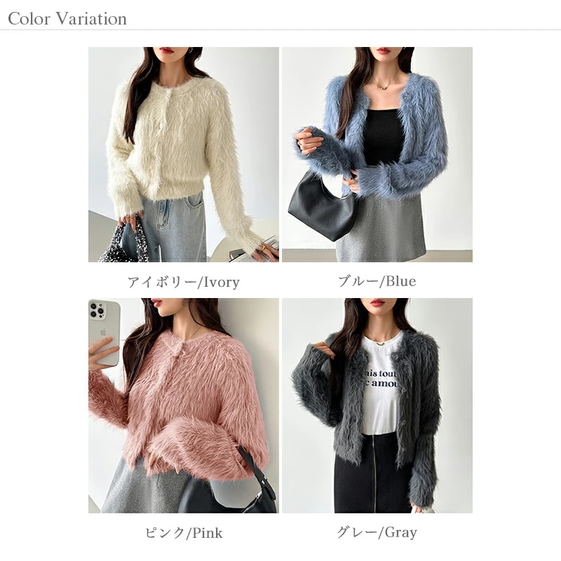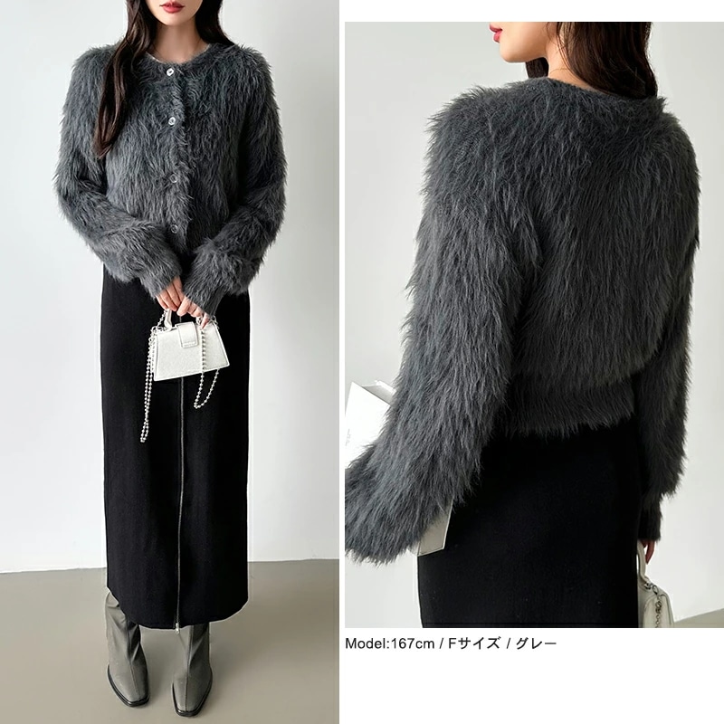 シャギーニットカーディガン シャギーニット ショートカーディガン ショート カーディガン レディース シャギー ニット ショート丈 トップス 長袖