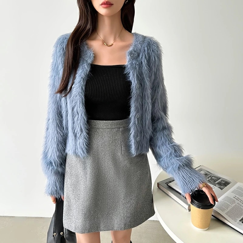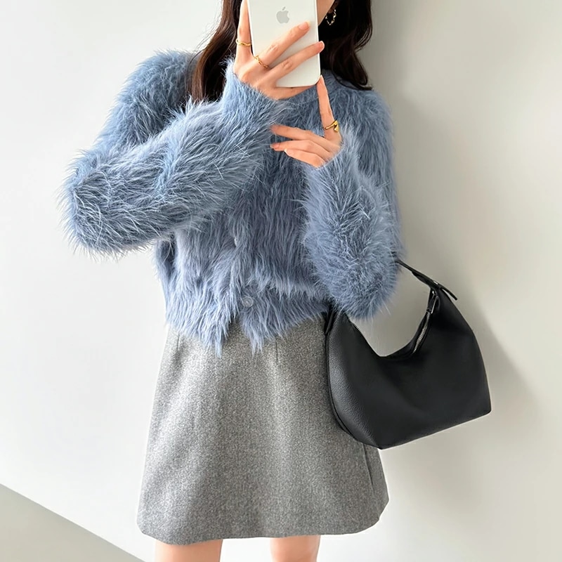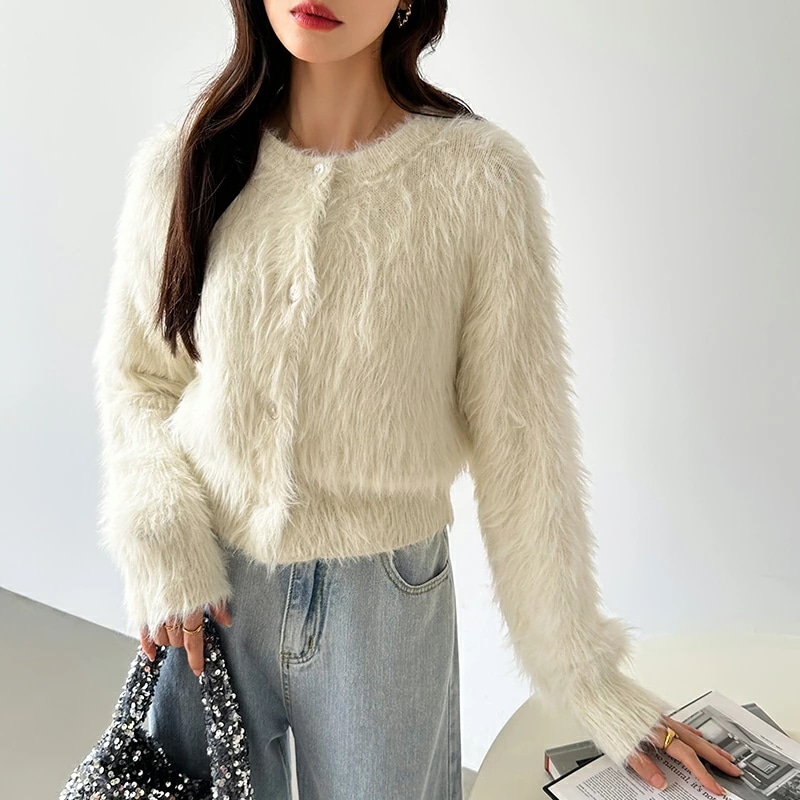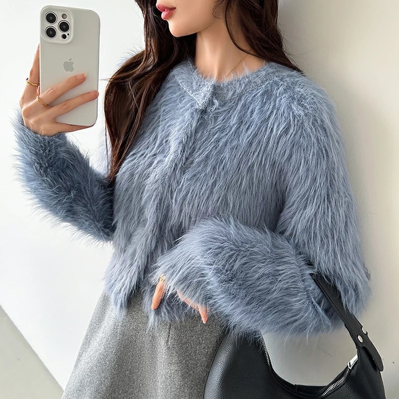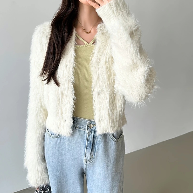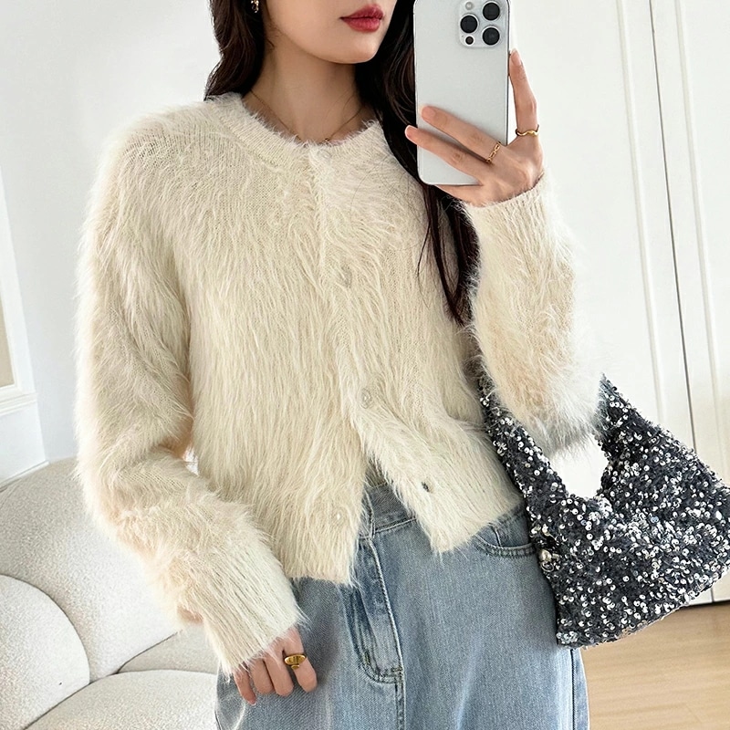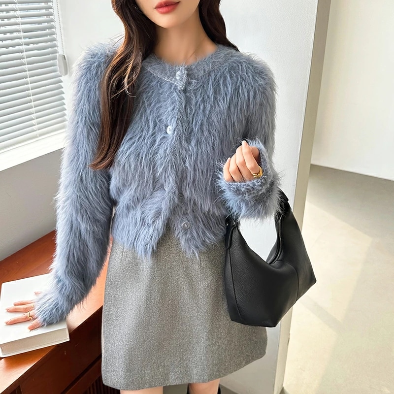 シャギーニットカーディガン シャギーニット ショートカーディガン ショート カーディガン レディース シャギー ニット ショート丈 トップス 長袖