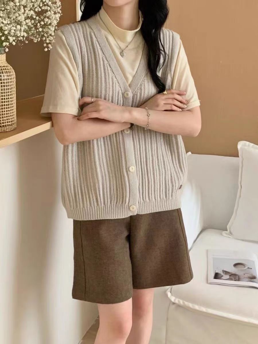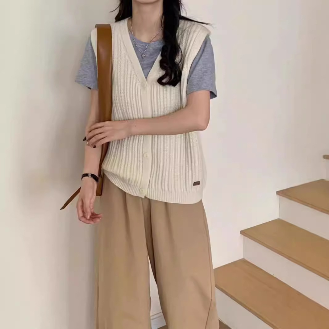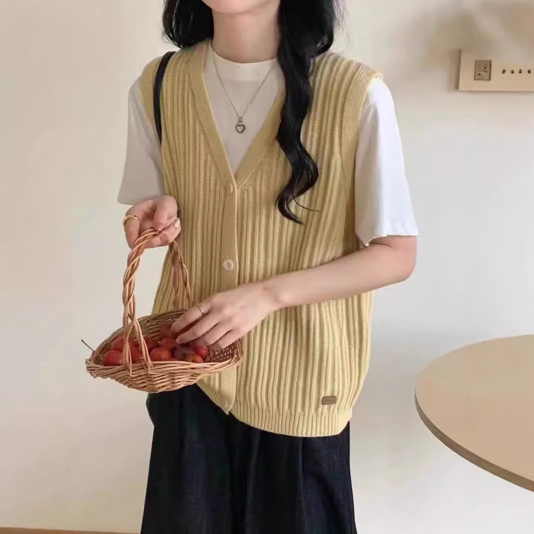 ニットベスト レディース Vネック 春 秋 前開き ベスト トップス カーディンガン ニット ノースリーブ セーター レイヤード 重ね着 ゆったり 大きいサイズ 体型カバー カジュアル