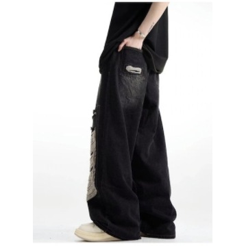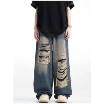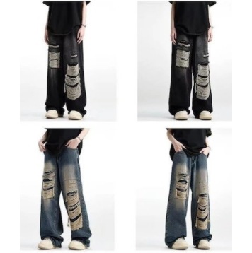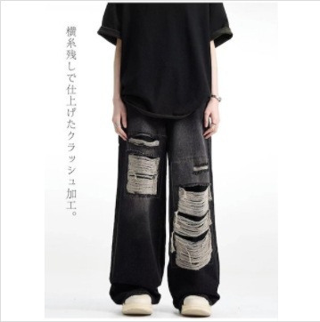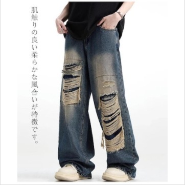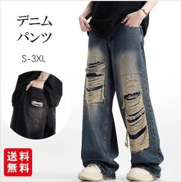 新作】デニムパンツ メンズ ジーンズ ストレート ワイドパンツ ダメージ加工 ロングパンツ ゆったり カジュアル ファッション 春秋 デニム ジーンズ