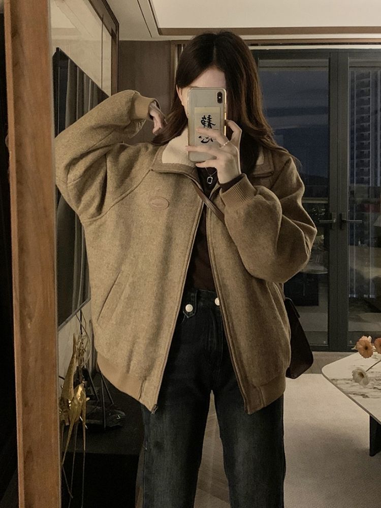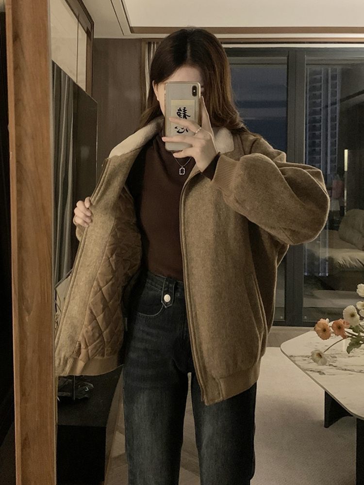 ジャンパー ブルゾン フェイクファーコート女秋冬高級感小柄ジャケット綿厚手開襟ジャケット野球着トップス ジャンパー ブルゾン