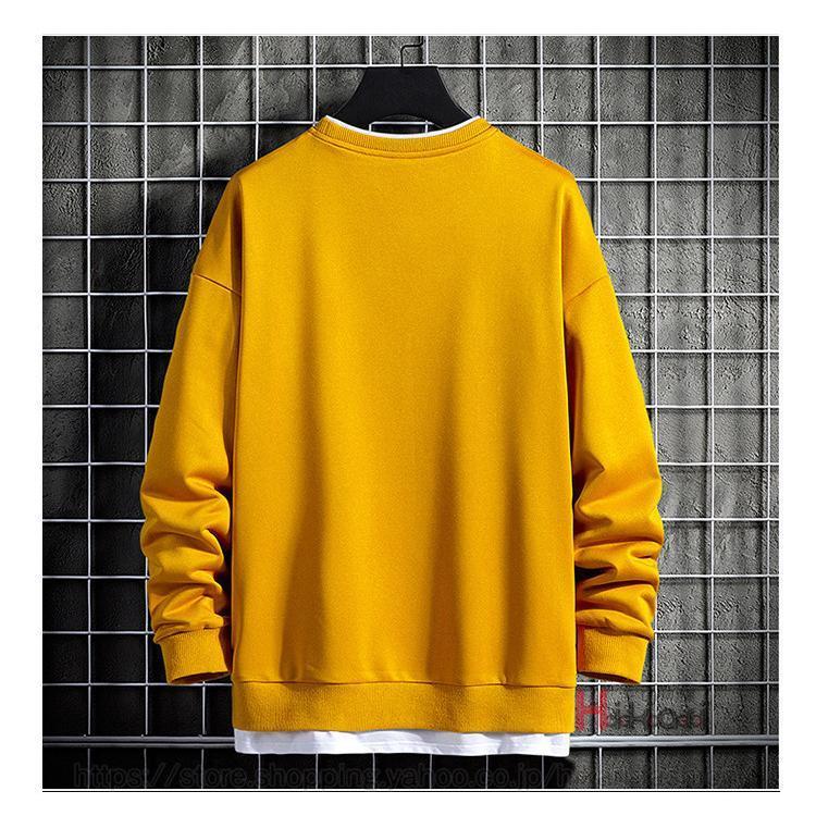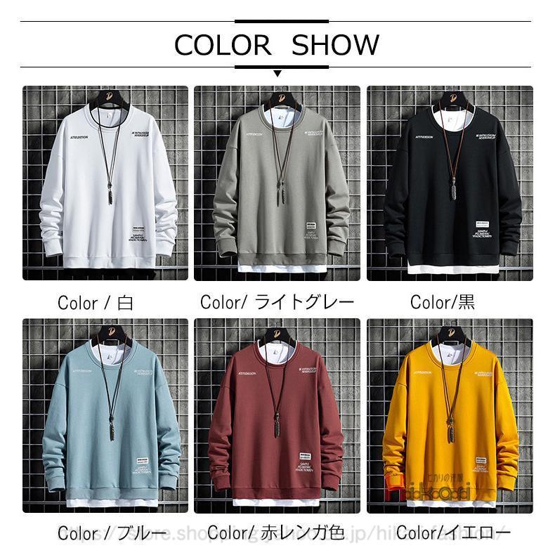 トレーナー メンズ プルオーバー メンズ春物 切り替え 重ね着風 スウェット 長袖 クルーネック メンズトレーナー 父の日 プレゼント Tシャツ