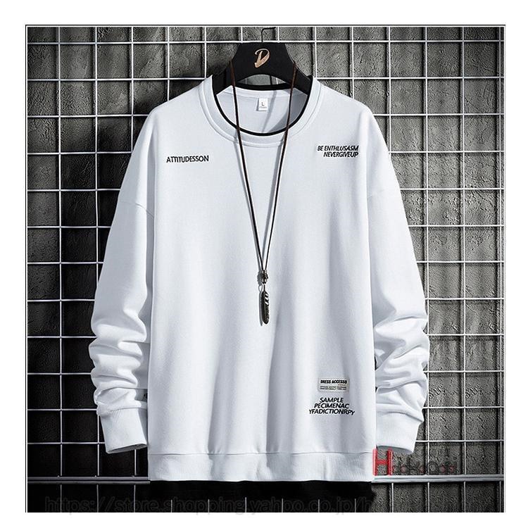 トレーナー メンズ プルオーバー メンズ春物 切り替え 重ね着風 スウェット 長袖 クルーネック メンズトレーナー 父の日 プレゼント Tシャツ