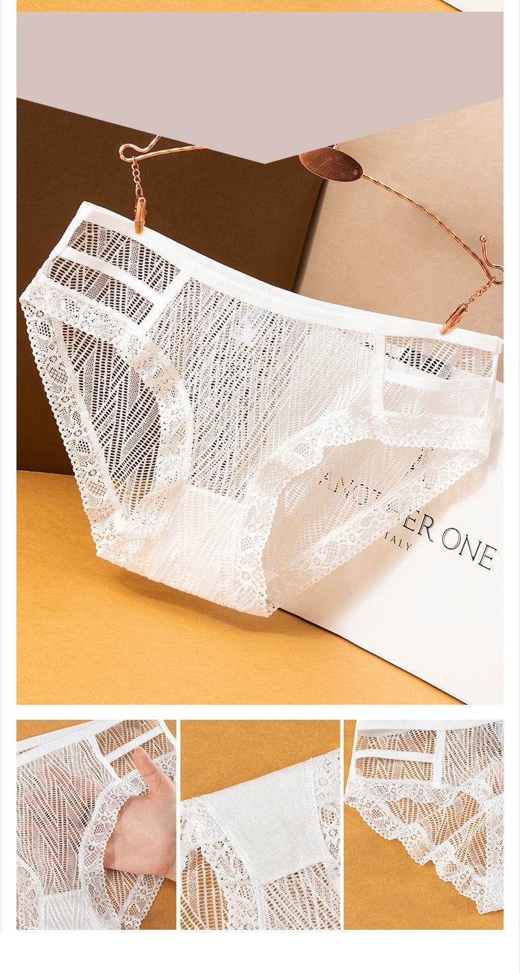 セット売りショーツ ショーツセット 3点セットセクシーショーツレースノンマーキングメッシュ中空白かわいい女子学生ショーツ韓国ファッション響かない シームレス
