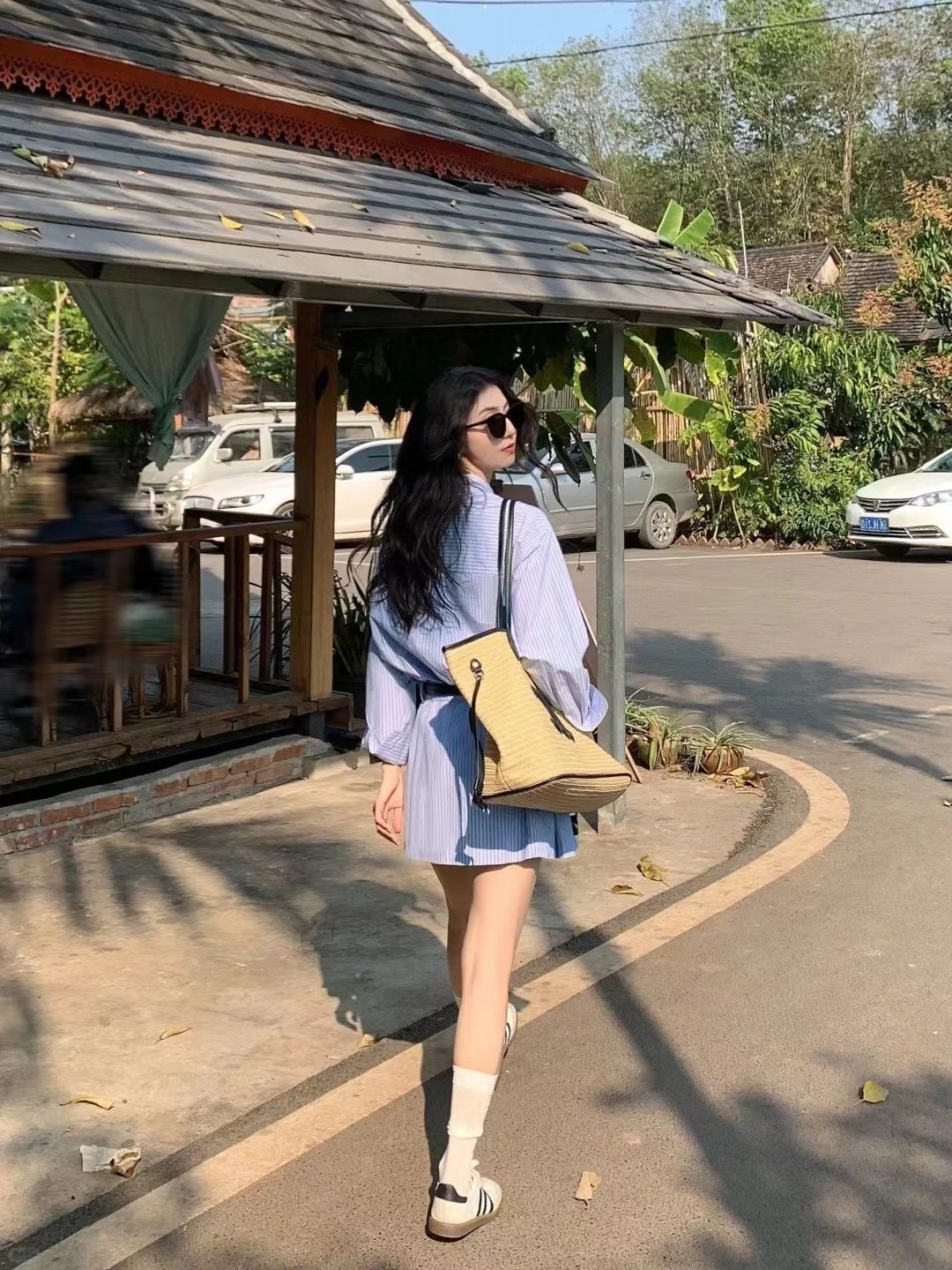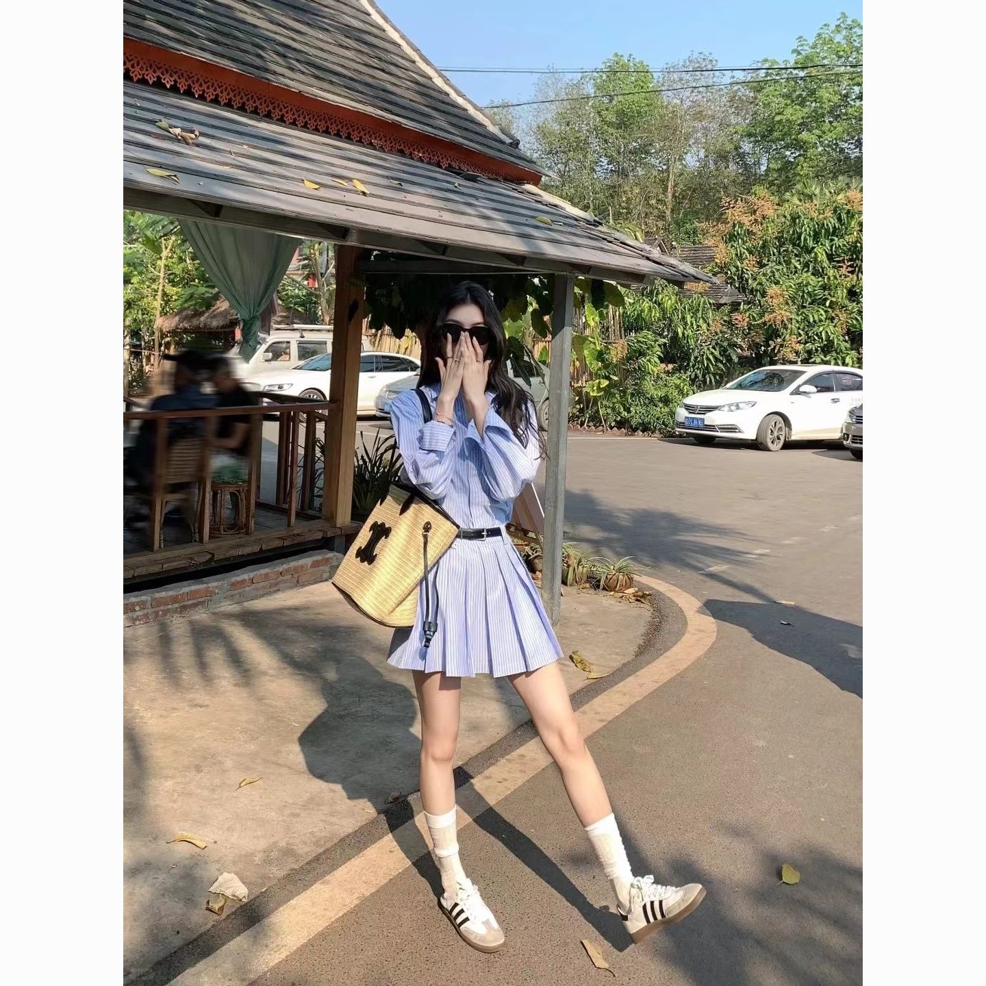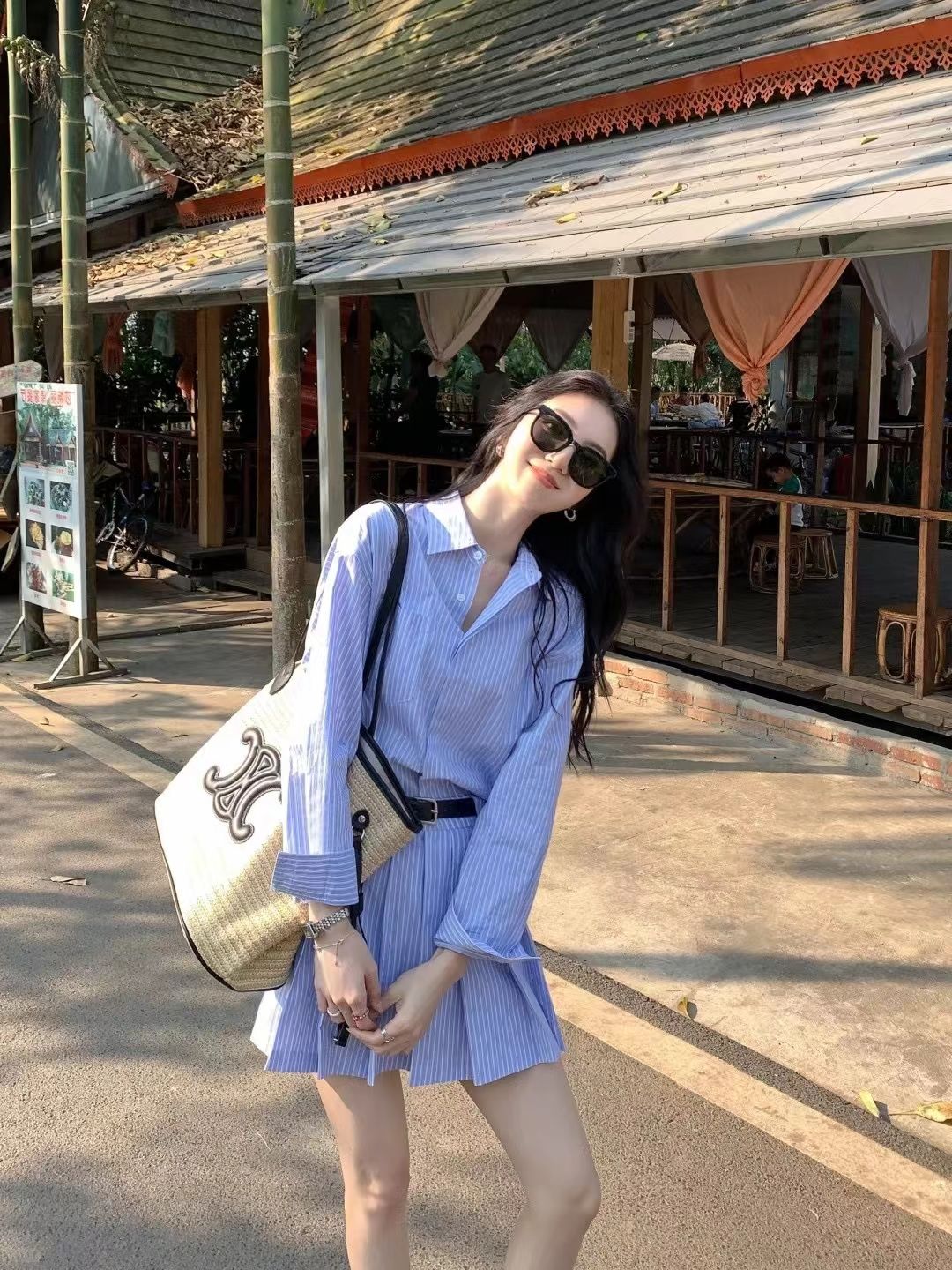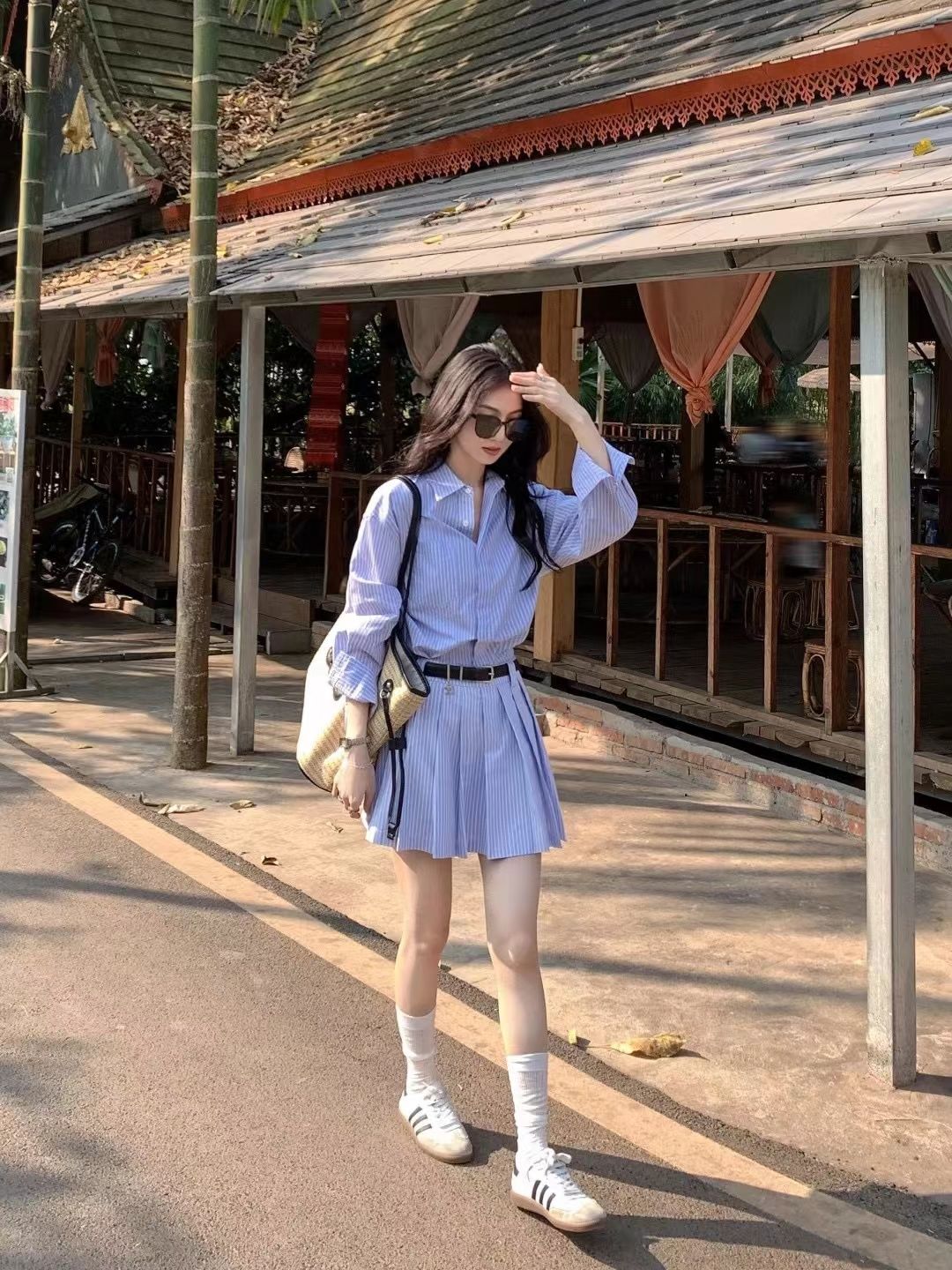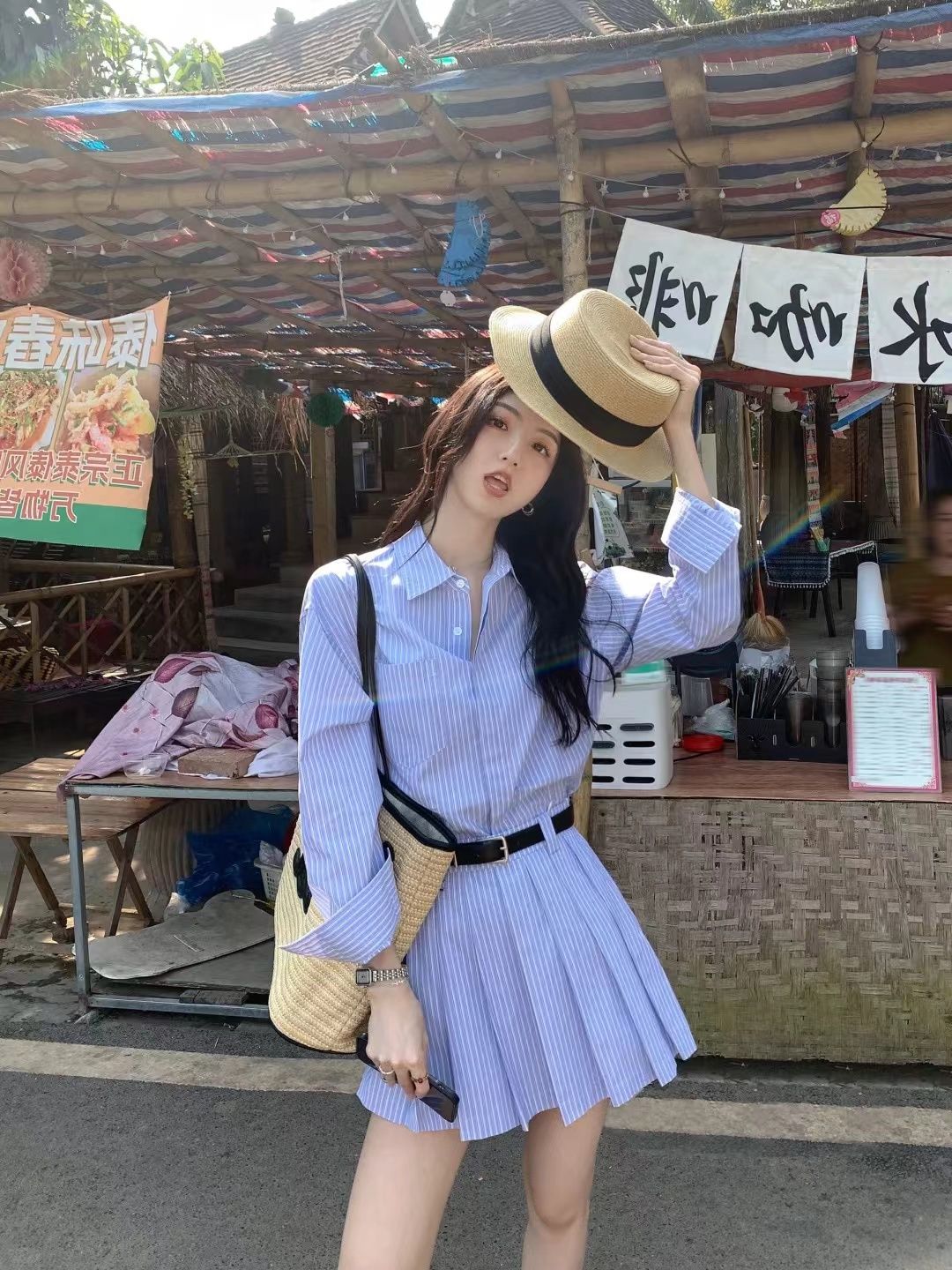 涼しく楽ちんセットアップ 2024春夏の新作高級長袖エアリーシャツ+スカートストライプスーツ レディース 韓国ファッション セットアップ