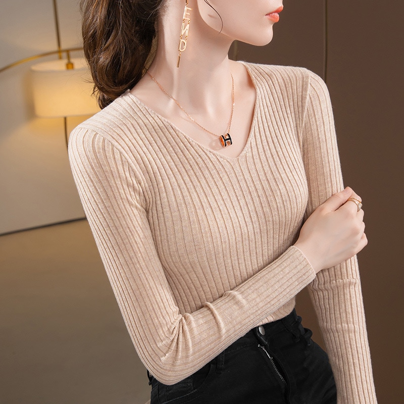 ニットカーディガンニットボトムシャツ女性2022新しい秋と冬の気質Vネックプルオーバージャンパー暖かい内側のテイクタイトトップス セーター ニット セーター