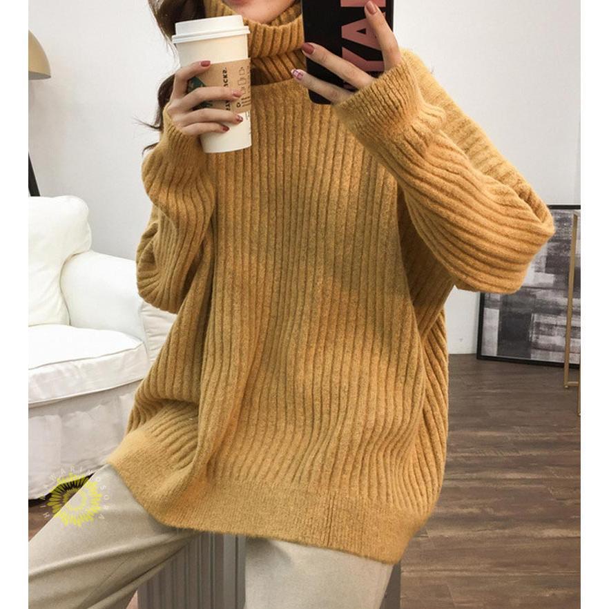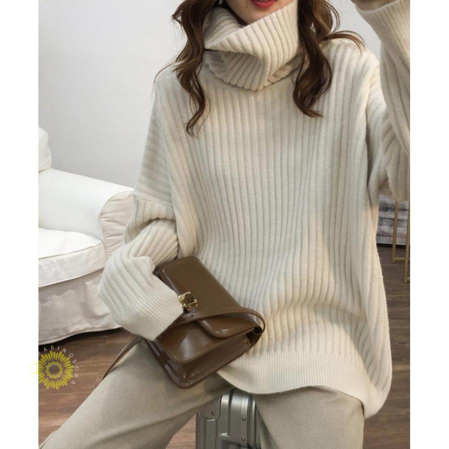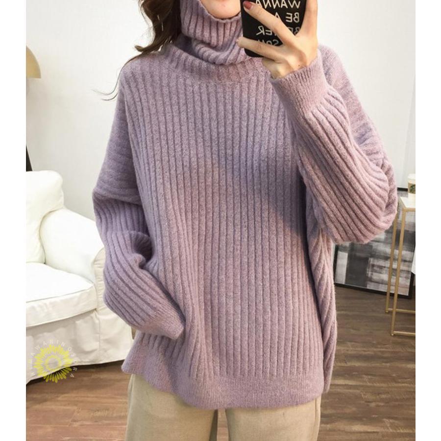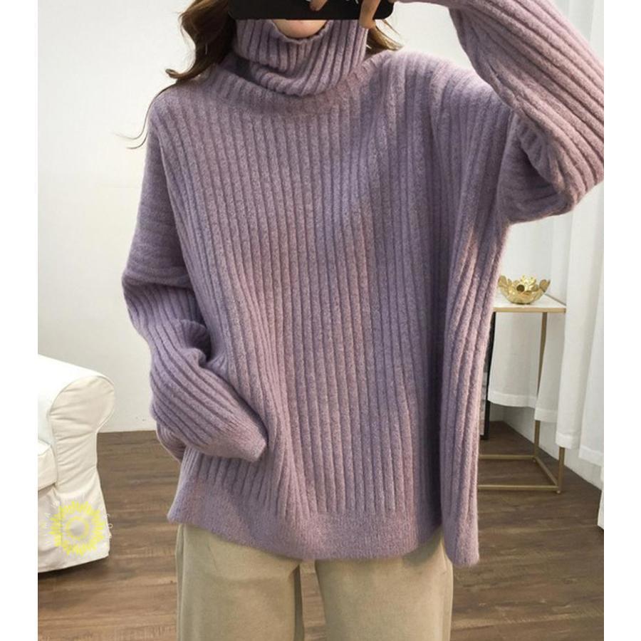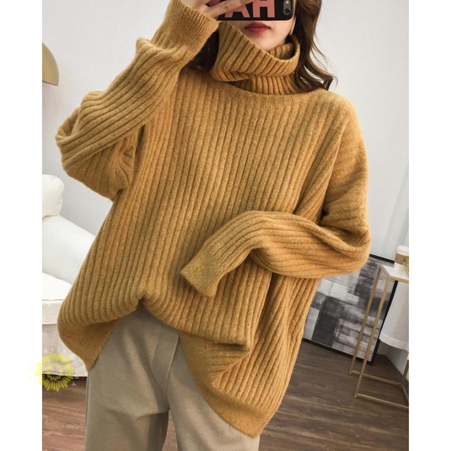 人気なリブニット ニットセーター リブニット プルオーバー 秋冬 レディース ニット チュニック 長袖 トップス ハイネック ニットソー ゆったり 大きいサイズ