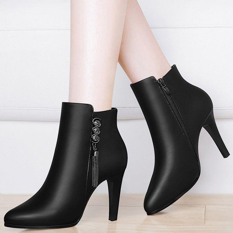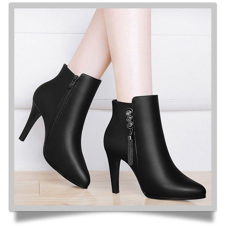 ショートブーツ ハイヒール ピンヒール ブーツ ブーティ ヒール 8cm 美脚 ブーティー 歩きやすい 痛くない レディース靴 バックファスナー アンクルブーツ