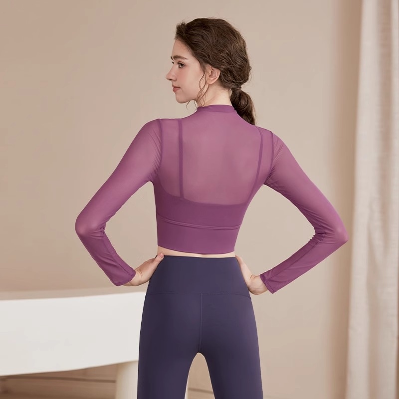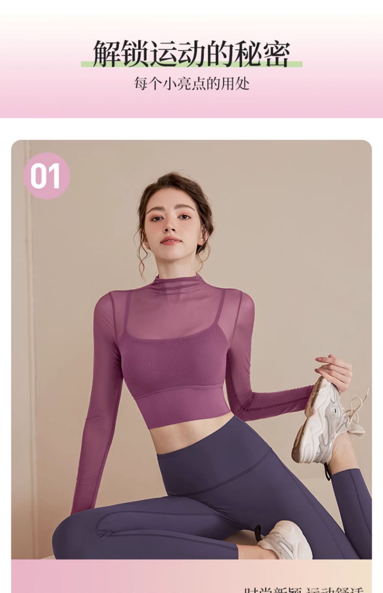 新作 ヨガウェア 女性用 長袖 春夏 ランニング メッシュ タイツ 通気性 フィットネスウェア スポーツトップス フィットネス ヨガトップス