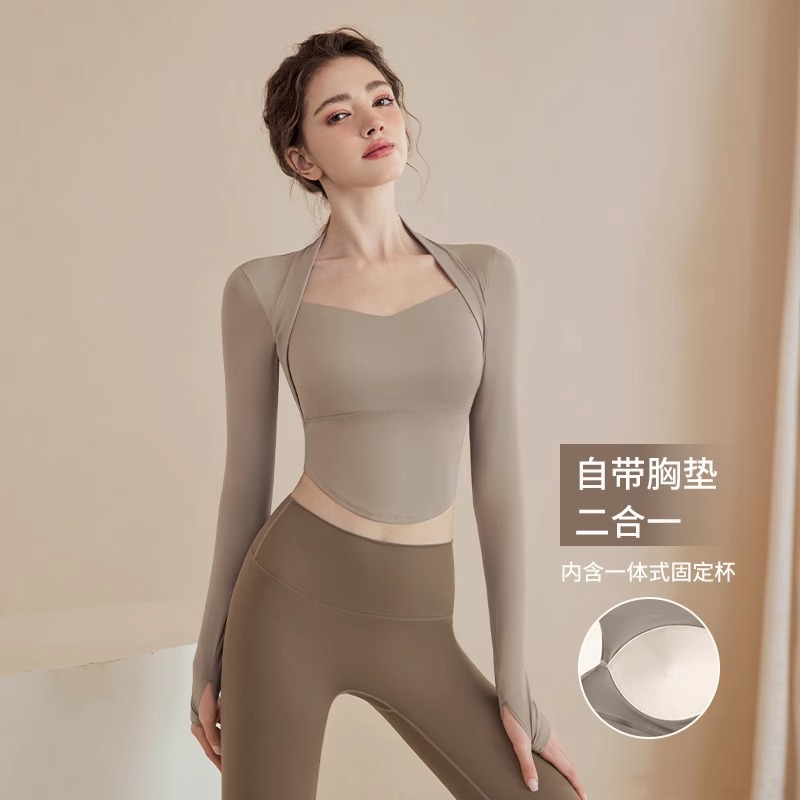 ヨガウェア レディース 胸パッド付き フィットネス 長袖 ランニング ピラティス トレーニング セット アスレチック トップス トレーナー