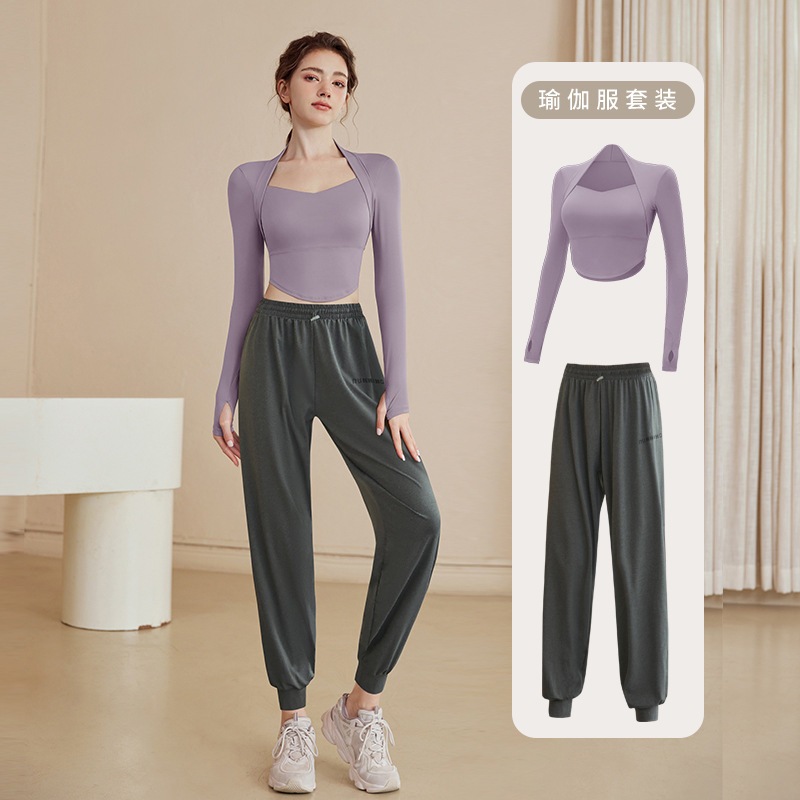 カラー: パープルトップ [メイン画像] [固定カップと胸パッド] ダークコーヒートップ[ラウンドネックスタイル][固定 カーキトップ[ラウンドネックスタイル][固定カップパ パープルトップ [固定カップ胸パッド] + グレーとパー パープルトップ[固定カップブラパッド]+グレーヨガパ パープルトップ[固定カップブラパッド]+黒ヨガパンツ パープルトップ[固定カップパッド]+グレースウェット パープルトップ[固定カップパッド]+黒スウェットパン