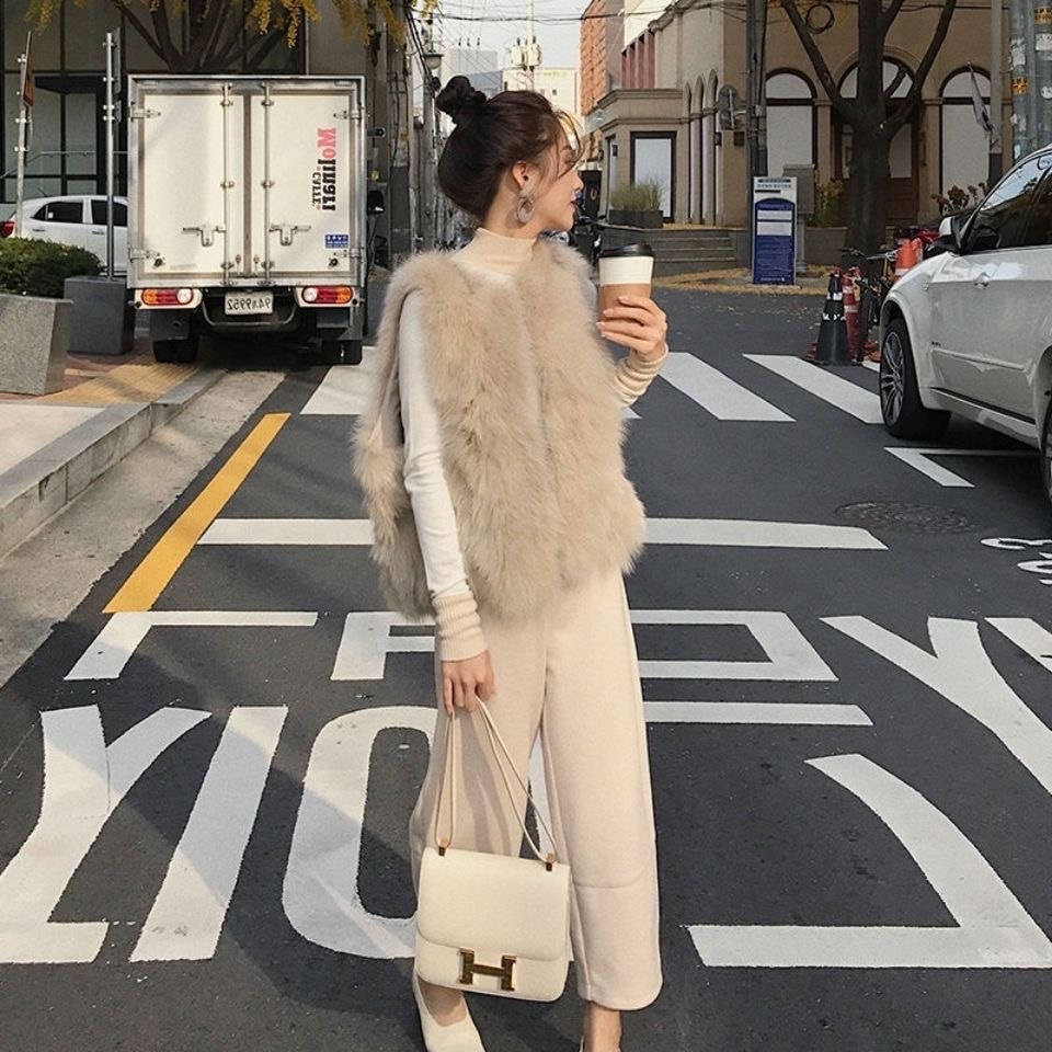 冬アウター 季節の変わり目に大 春まで使えるボリュームエコファーベスト 韓国 ジャケット レディース ファー 毛皮アウター