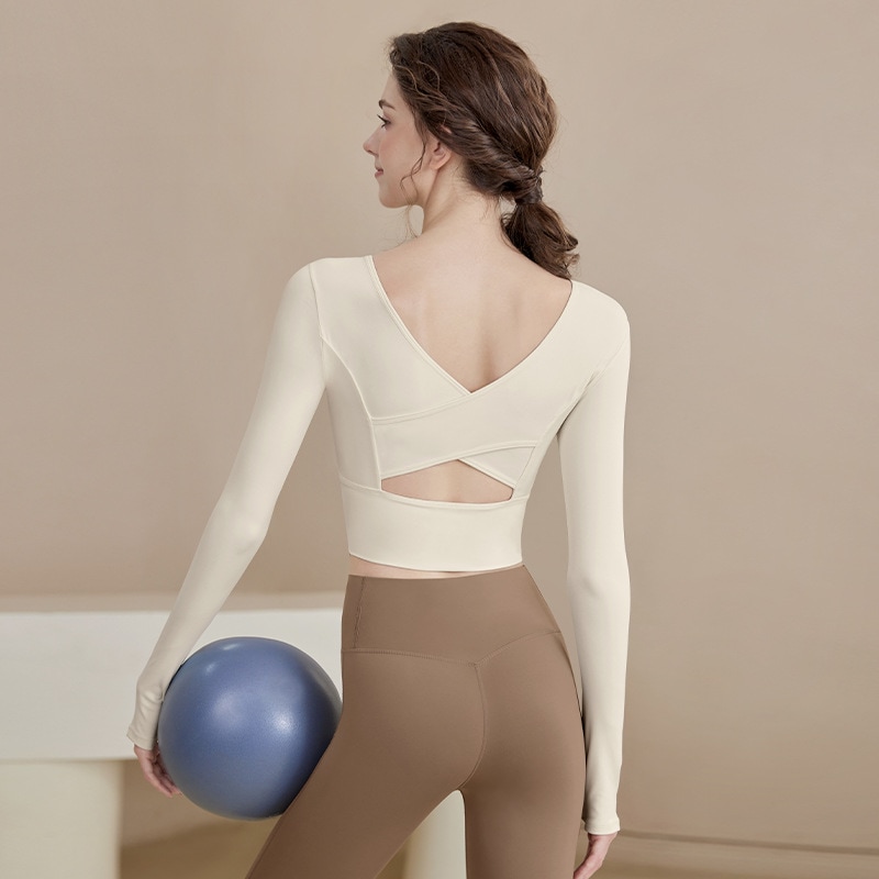 ヨガウェア 胸パッド付き 秋冬 長袖 クロス 美しい背中 薄手 スポーツ ロングスリーブ フィットネスウェア レディース フィットネス ヨガトップス