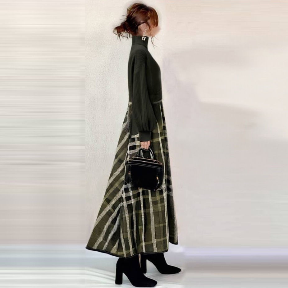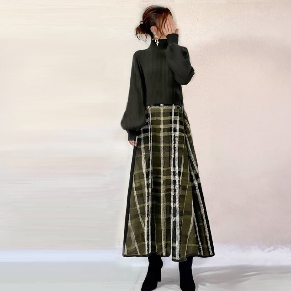 2025初春 日系 大きめサイズ セーター 切り替え ニットワンピース 長袖 春 ロングワンピース レディースファッション メガ割商品