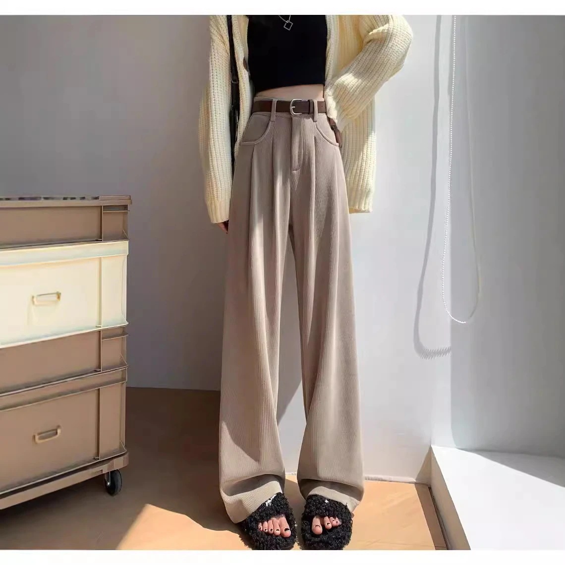 ワイドパンツ 秋冬 裏起毛 パンツ レディース ロングパンツ 微起毛 ガウチョパンツ 体型カバー パンツ ストレートパンツ ロング ロング丈パンツ コーデュロイ 秋物 裏起毛 ウェストゴム ポケット付
