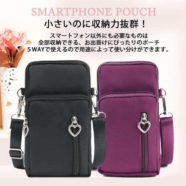 シンプルでかわいい5WAY多機能スマホポーチお出掛けの際にスマホやカード類等必要なものが全部入る便利なポーチです。