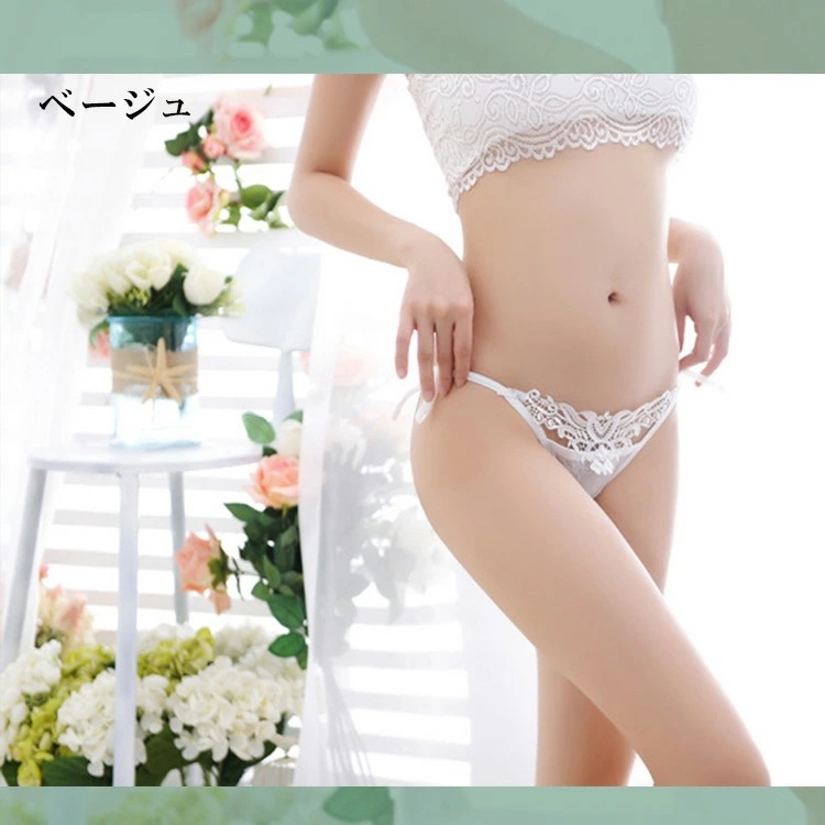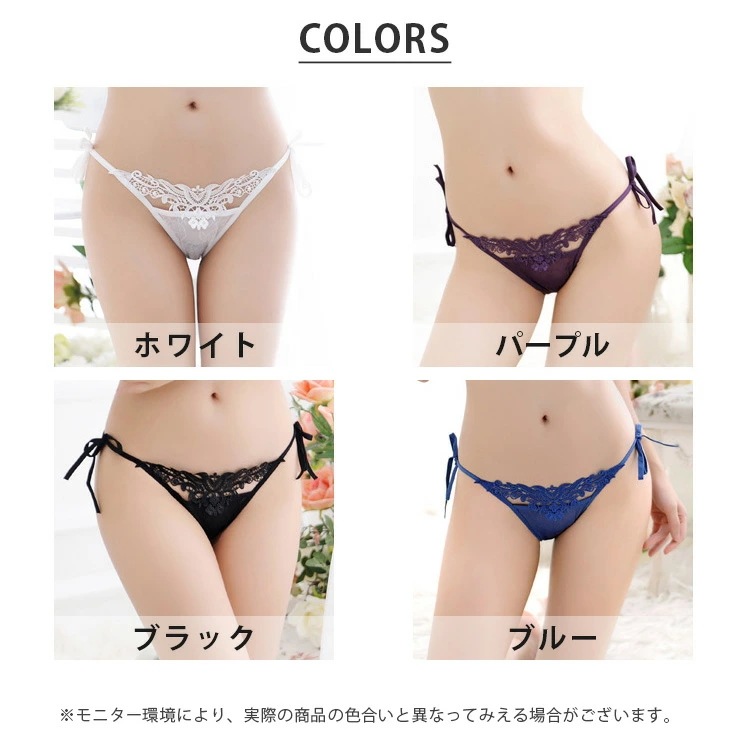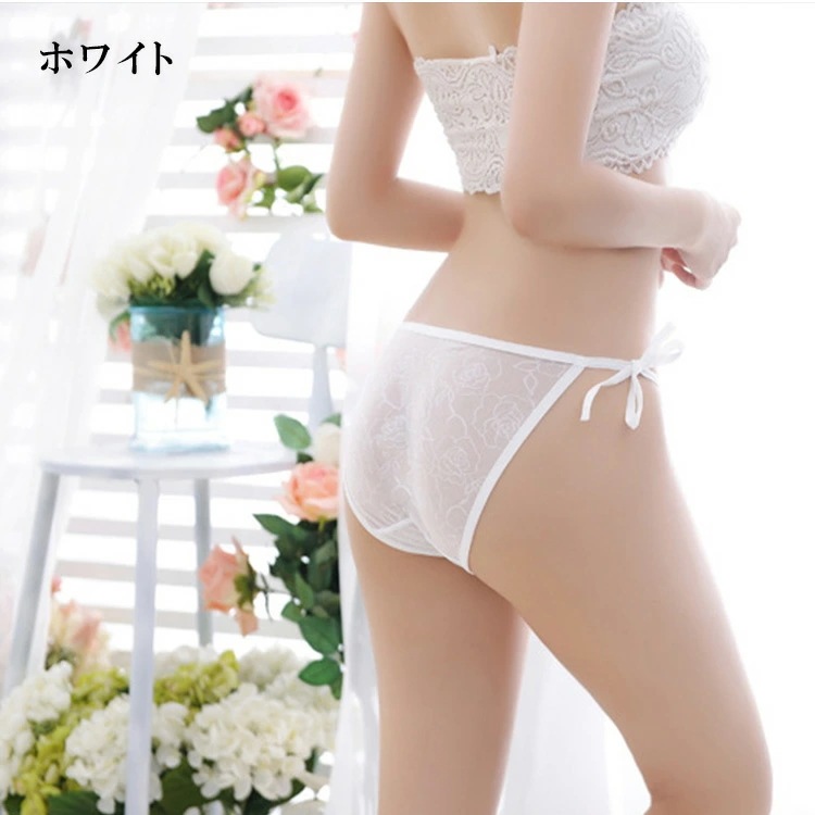 EGOKILLZ リボン 総レース フラワー ショーツ 紐パン 単品 ショーツ レース リボン セクシー 可愛い レディース ランジェリー パンティ 透け 女性 下着