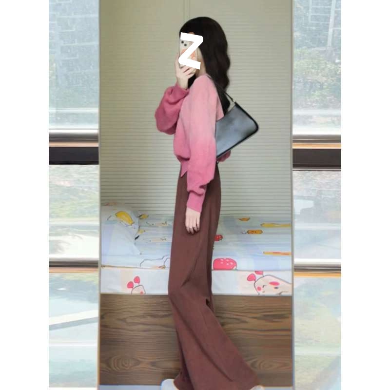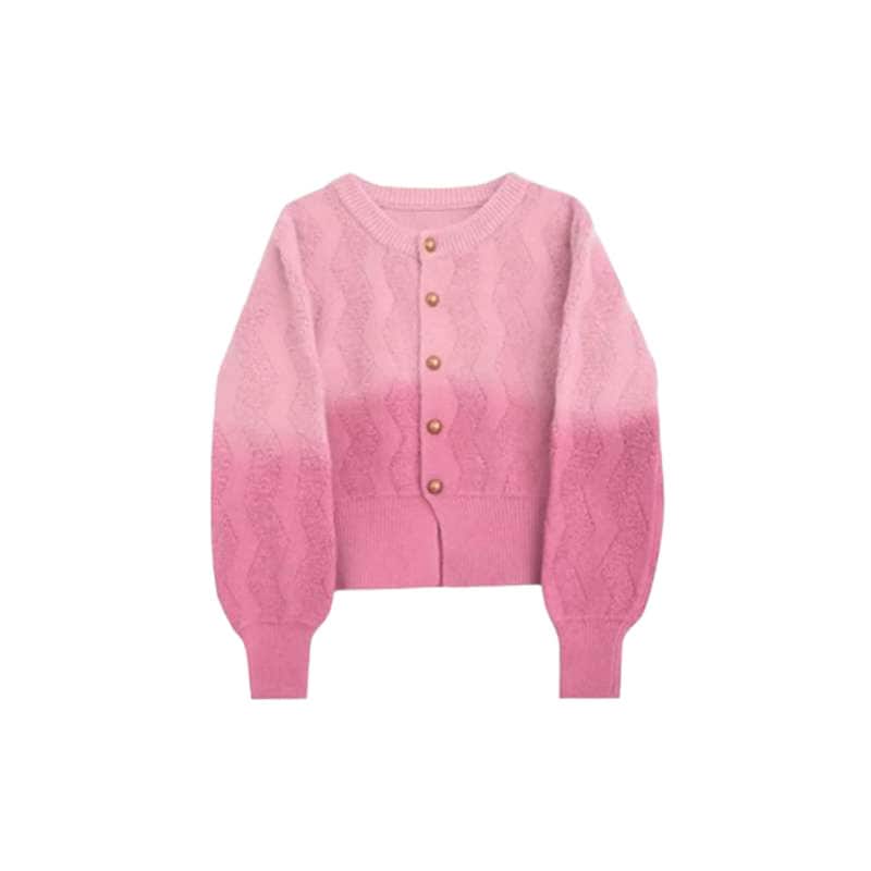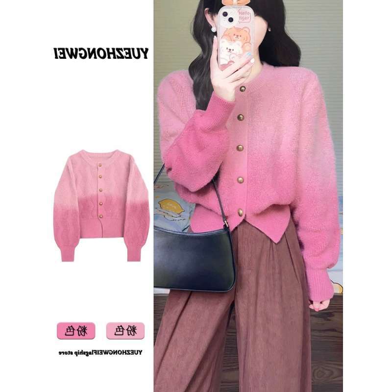人気なリブニット フレンチグラデーションピンクジャンパーカーディガン女性2025新しい怠惰な風ニットトップス ニット
