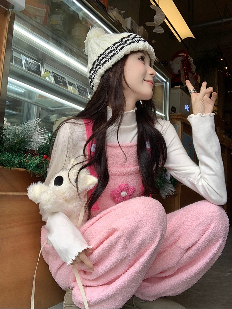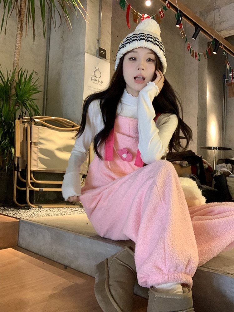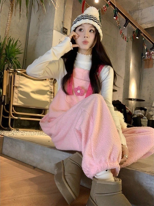 ピンクの女の子の心秋と冬のピンクのシステム模倣羊巻き毛かわいい年齢バックズボンカジュアルズボン その他 パンツ
