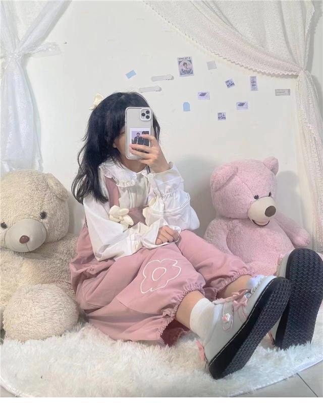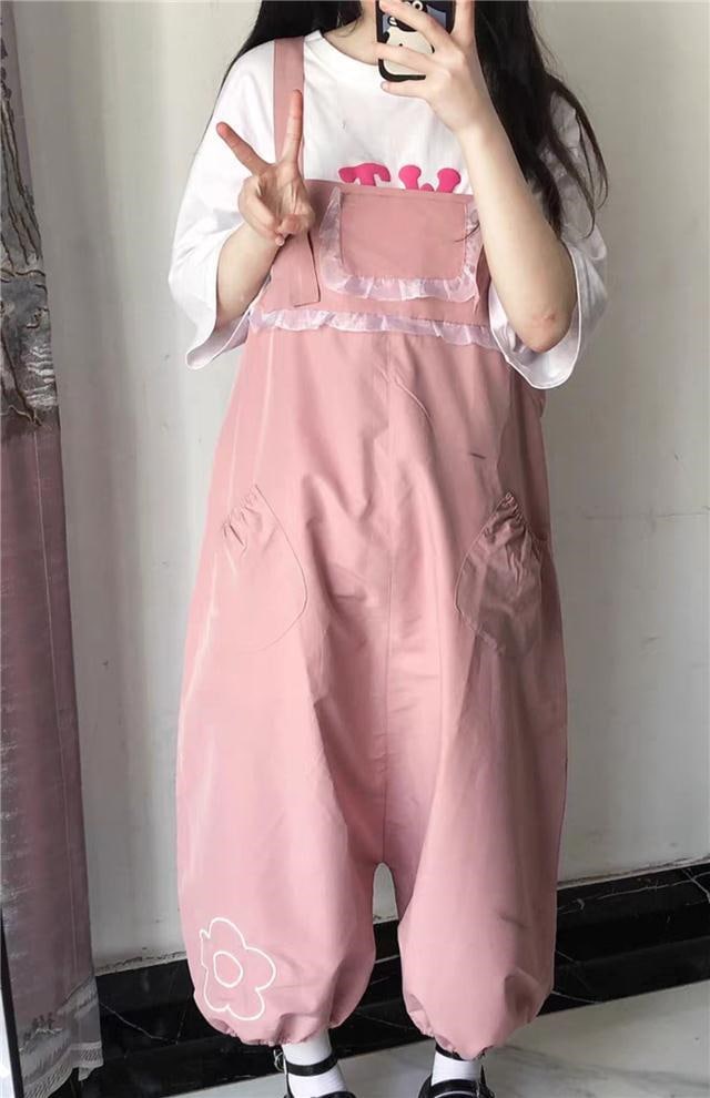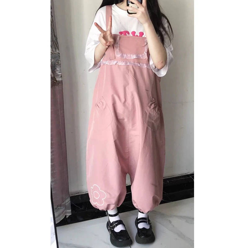 日本のかわいい花のバックパンツ女子学生韓国緩い春と秋2024新しいワンピース提灯ワイドパンツ その他 パンツ