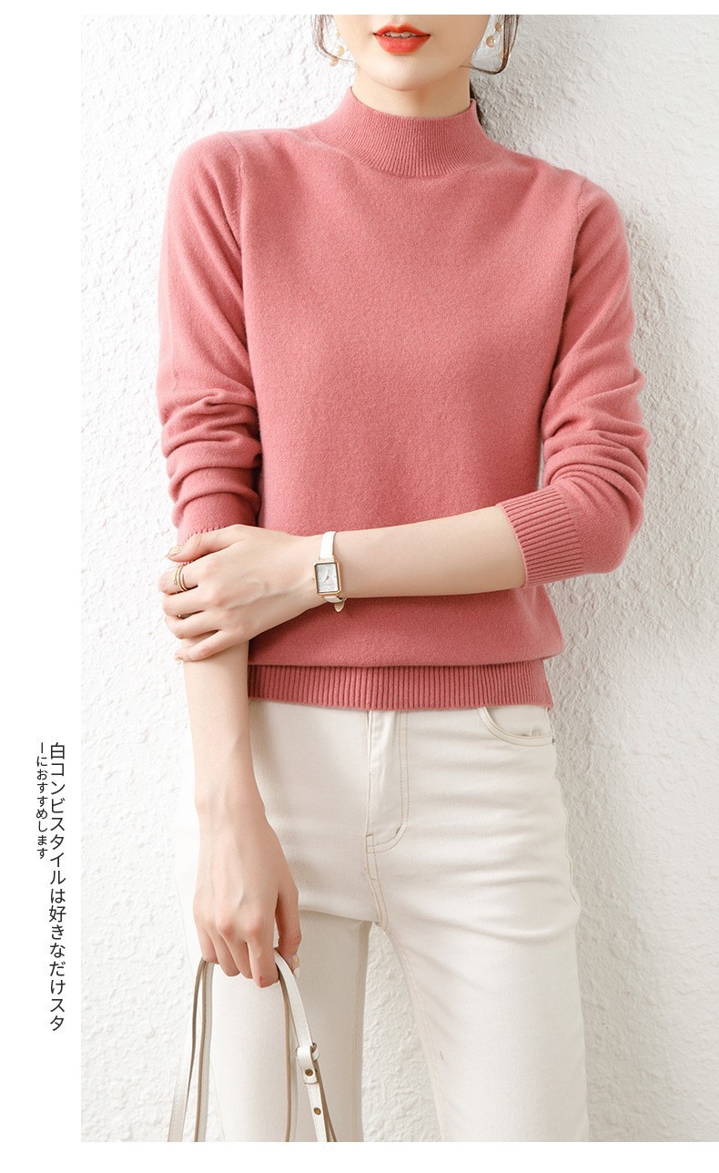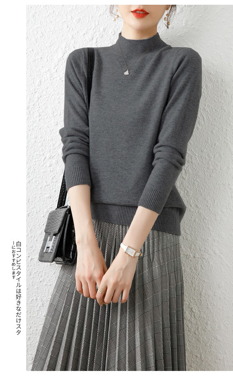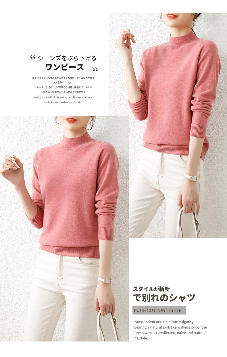韓国ファッションレディース ベーシックニット 気質ハーフハイネックボトムシャツ女性インナースリムニット長袖春秋ジャンパー ニット